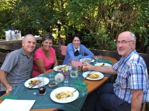 À notre arrivée à Munich, rencontre de notre guide André ainsi que notre chauffeur Ötsi puis départ vers notre hôtel, situé à Stans, à plus de 100 kilomètres de Munich. Dîner en route: il fait tellement beau que nous avons mangé à l'extérieur. Wow! 30° et plus! Question de se dégourdir un peu, nous faisons une petite marche et pour certains, la marche fut un peu plus longue, nous sommes allés voir le lac Starnberg.