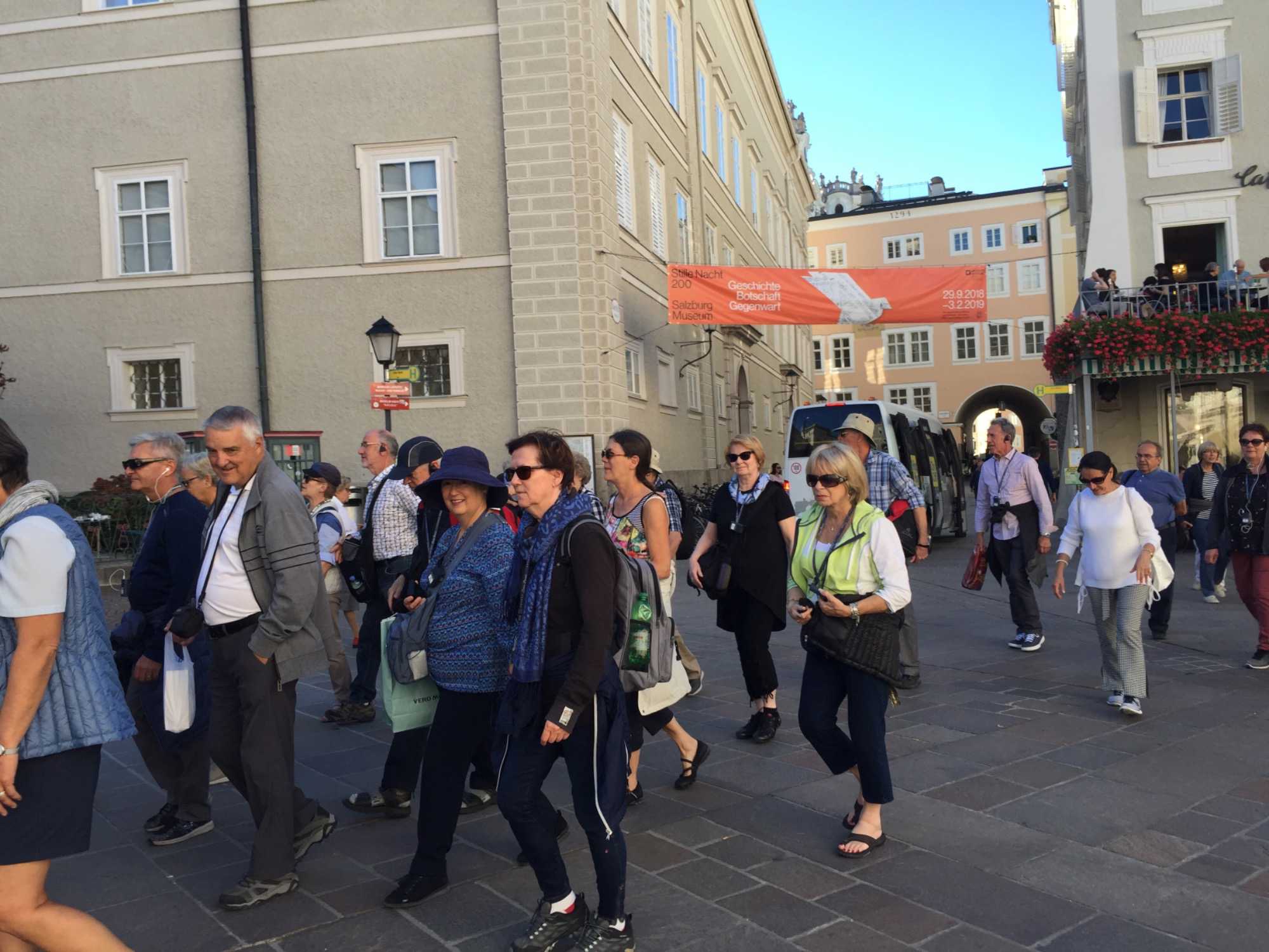 Nous quittons notre hôtel à 8h15 nous nous dirigeons vers Salzbourg. Nous avions l’avant-midi de libre en plein centre de l’ancienne ville. Nous avons vraiment apprécié ce temps. Plusieurs en ont profité pour faire des achats. Nous prenons notre dîner en plein cœur de l’action dans l’ancienne ville en face de la maison natale de Mozart un choix idéal