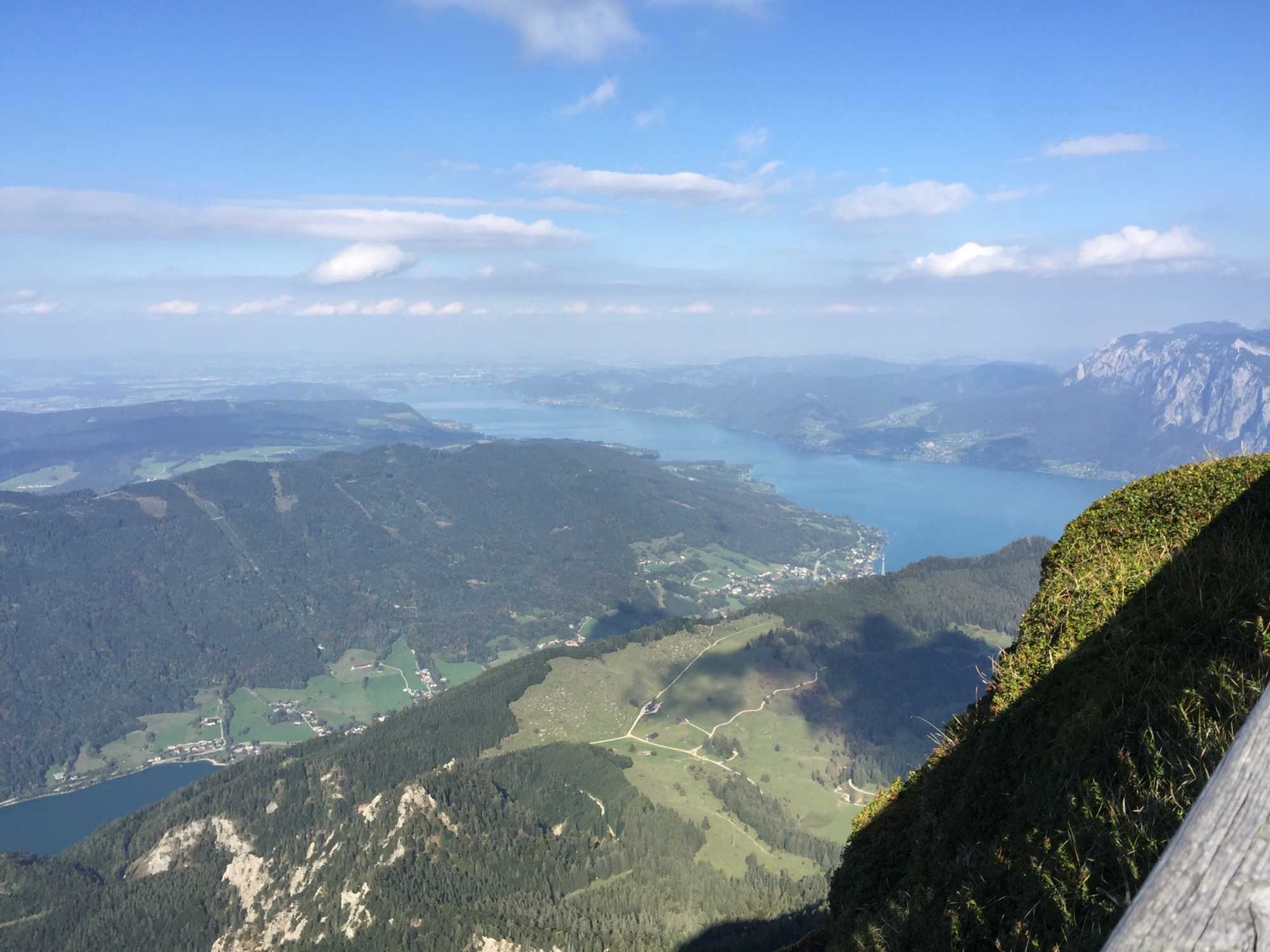 Petite balade à pieds puis nous embarquons à bord d’un train à crémaillère pour accéder au sommet du Scafberg, d’où nous avons une vue splendide à 360 degrés, sur les lacs du Salzkammergut (Wolfgangsee, Fuschlsee, Attersee et Mondsee) et les Alpes de Salzbourg. Une vue à couper le souffle! Nous vivons des moments inoubliables!
