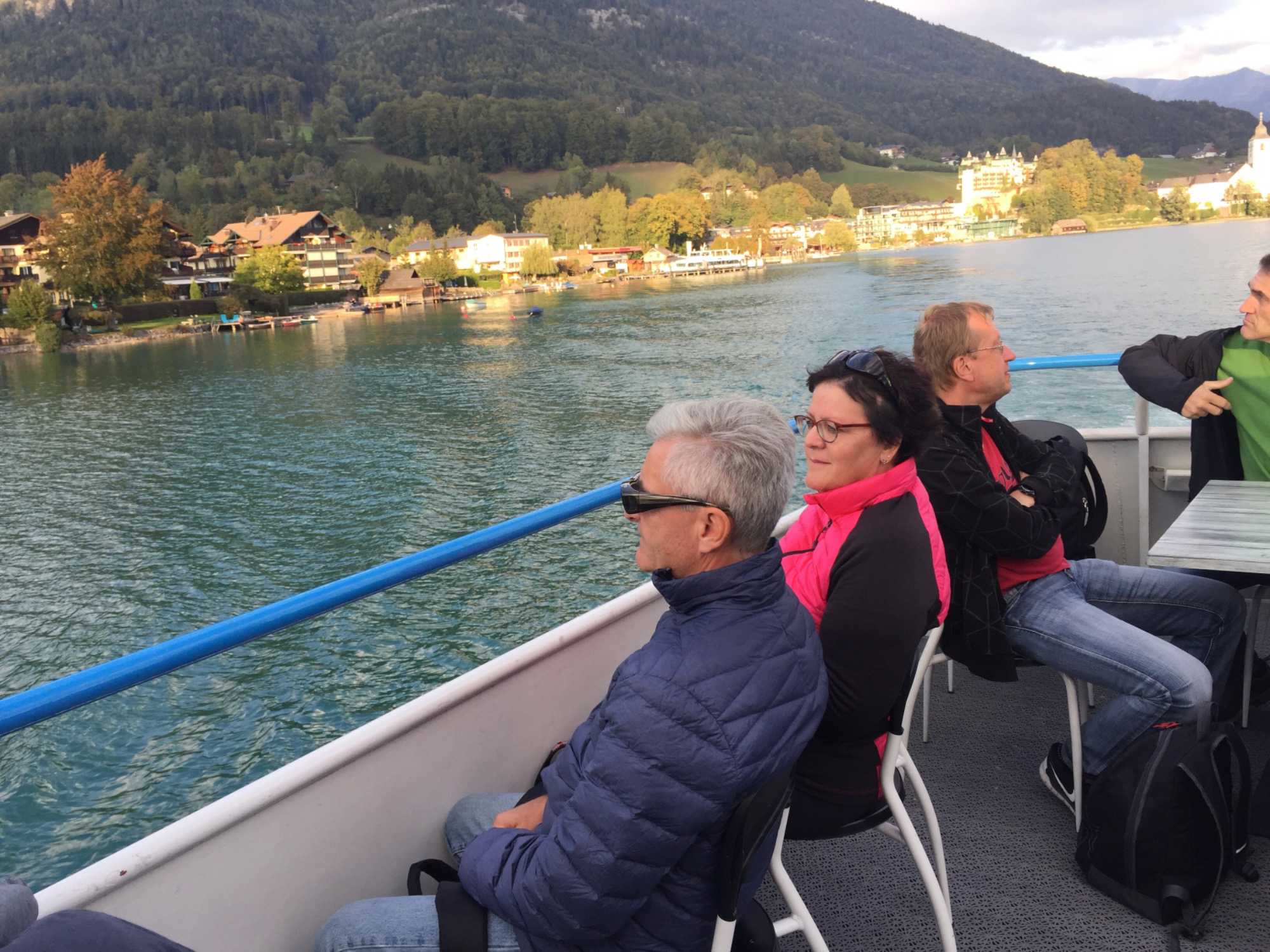 On est tous d'accord pour dire que la température est vraiment de notre côté, il fait un soleil resplendissant. Une autre petite balade à pied et nous voilà partis pour une croisière sur le Wolfgansee, qui nous conduit à Saint-Gilgen pour reprendre l’autocar. Le tout entouré de montagne wow!
