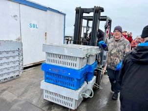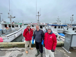 Tous rassasiés c'est un début de visite qui s'amorcera avec la visite du port de Grande-Entrée où l'on découvrira le plus grand port de pêche de homards de l'Est du Canada. Comme il est 16h00 déjà, la plupart des homardiers sont revenus au port car la pêche débute très tôt le matin mais nous aurons la chance d'en voir un qui est en train de décharger sa cargaison du jour et c'est avec un grand plaisir que nous irons les voir faire et les entendre nous en parler aussi. Ils sont généreux de leur temps. Tous ont appréciés. On se reprendra une autre journée pour les voir partir le matin et à leur arrivée aussi. Ça grouille au port quand tous y sont. Josée prends aussi le temps pour nous parler de l'histoire de ce port, de la pêche au homard et de bien d'autres informations intéressantes.