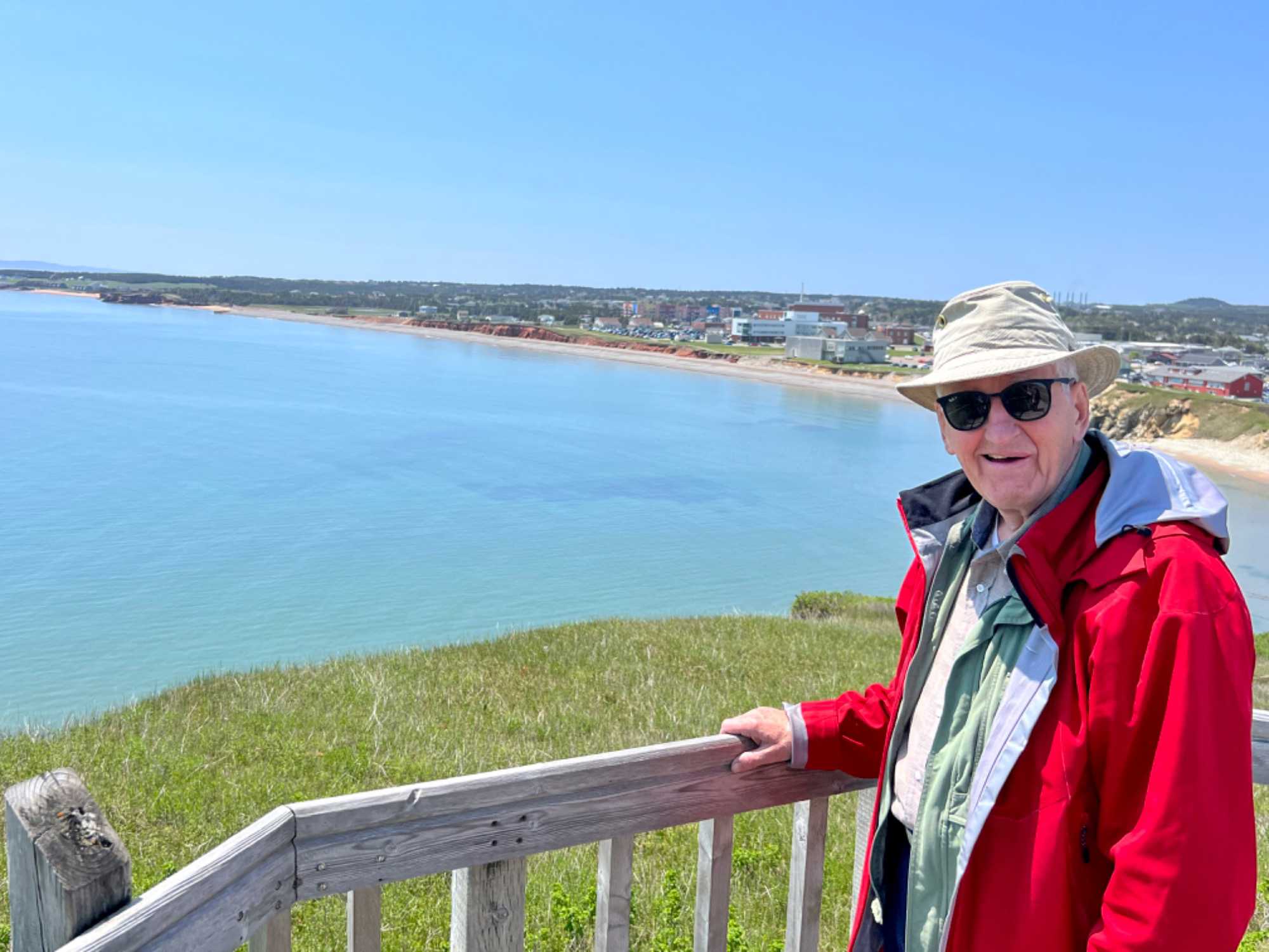 L'avant -midi est déjà passé et il nous faut donc se rendre au resto L'Accent de Cape-aux-meules pour y prendre notre dîner. Fish and chips et croque-monsieur au canard sont à l'honneur. Endroit charmant en bord de mer pour y prendre un repas. Aussitôt arrivée et aussitôt on repart direction le belvédère de Cape-aux meules où l'on fera un arrêt pour le gravir, pour ceux qui le désir, y voir les boutiques tout autour et en profiter pour se faire chauffer au soleil qui est encore avec nous aujourd'hui. Un beau moment pour tous.
