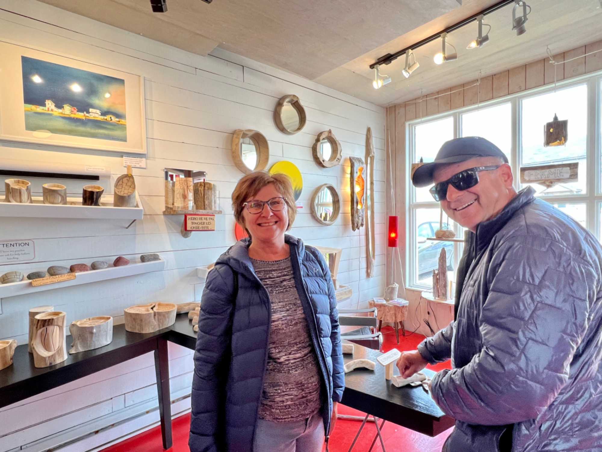 La température est agréable tout de même, malgré l'absence de soleil, mais au moins il ne vente pas et ce n'est pas froid. Notre premier arrêt sera donc à la boutique L'abri côtier où plusieurs artisans y exposent leurs œuvres. C'est ici aussi que l'on pourra apercevoir une collection de sable venant des plages de partout dans le monde. Impressionnant de voir toutes les sortes de sable qui existe et les couleurs.