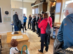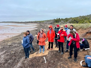 Que de plaisir de voir tout le groupe s’amuser dans le sable avec leurs mains afin de trouver les coques, qui souvent étaient bien profondément plongées dans le sable. Quelle belle expérience nous avons fait tous ensemble! Nous avions une mesure car on doit respecter la dimension et retourner celles qui étaient trop petites. Nous avons participé à cette pêche amusante tout en rires et plaisir. On serait bien restés plus longtemps pour plusieurs mais le temps file, et nous devons rentrer à l'auberge pour les faire cuire et y goûter un peu plus tard , mais avant, nous devons aller à notre dernière sortie de la journée et c'est vers Grosse-Ile que nous nous rendrons pour visiter le musée des vétérans et la petite école à Old Harry.