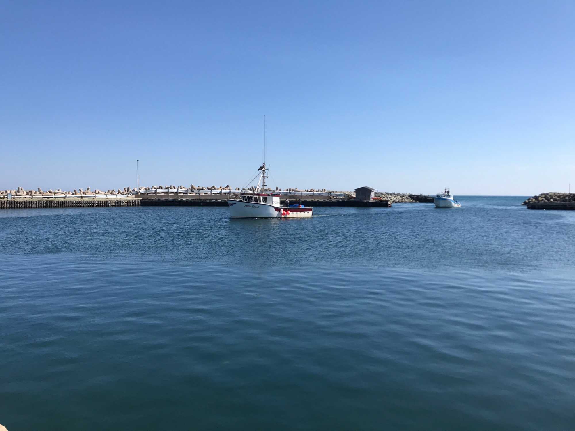 Bonjour! Aujourd’hui, la journée commence de bonne heure… à l’heure des pêcheurs! Pour ceux qui le veulent, nous partons très tôt de l’Auberge (3h30!) pour nous rendre au quai où nous assistons au départ de la flotte d’homardiers. Nous sommes 16 lèves-tôt qui ne veulent rien manquer de leur voyage! Il y a de l’effervescence dans l’air! Nous voyons une trentaine de bateaux partir sur une mer assez calme. C’est tout un privilège d’avoir accès à ce départ. Même à cette heure, les pêcheurs répondent encore de bon coeur à nos questions. On a même le plaisir de voir le soleil se lever tranquillement à l’horizon. Les pêcheurs nous ont expliqués qu’ils partent si tôt car ils ont environ 1h30 de route pour se rendre à leurs lignes et que la pêche est permise à partir de 5h le matin. Voilà! Puis nous retournons à l’auberge pour reprendre un peu de sommeil…