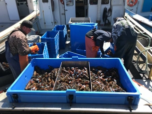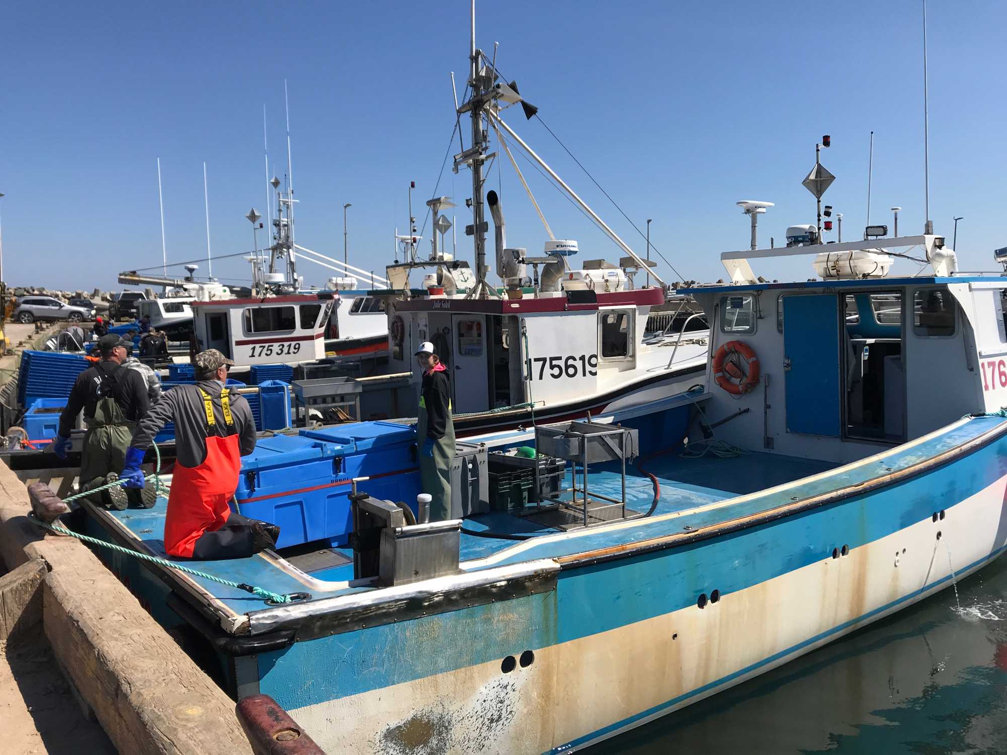 Puis, notre journée Homard continue… on retourne au quai de Grosse-Île où Josée nous parle d’un maillon important de la pêche ici, soit la coopérative Cap Dauphin qui compte une centaine de membres pêcheurs de homards sur les 325 pêcheurs des Îles-de-la-Madeleine. Nous découvrons un autre côté de l’exploitation de cette industrie première. Nous avons encore le bonheur de voir les bateaux de pêche, cette fois revenir au port, encore chargé de homards. Les pêcheurs nous disent qu’ils ont fait une bonne pêche. Ils en sont bien contents.