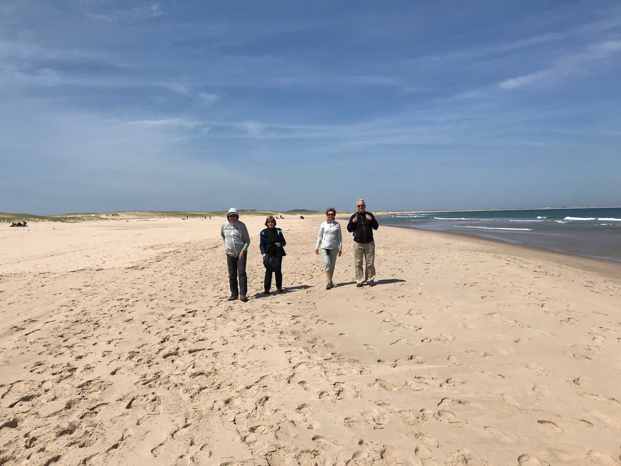 Cet après-midi, nous faisons la découverte d’une des plus belles plages au monde selon le célèbre magazine National Geographic: la plage de Grande Échouerie, sur Grosse-Île. Dès notre arrivée, nous sommes bien impressionnés par la longueur de la plage. Si l’on désire marcher, c’est la bonne plage car on pourrait marcher 21 km en suivant la mer et… espérer un transport sur roues pour le retour! Josée nous mentionne que plusieurs font cette marche en 8 heures environ. Nous avons eu du temps libre pour nous promener. Il n’y a que Manon et moi qui avons osé mettre nos pieds à l’eau. Elle n’était pas froide, l’eau était glaciale à ce temps-ci de l’année!!! Ici, ils ont le sable blanc qui chante! Il suffit de marcher en glissant les pieds dans le sable pour l’entendre chanter, c’était bien amusant.