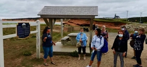 Nous nous arrêtons tout d’abord aux artisans du sable. Une très jolie boutique nous plonge dans l’univers du sable aux îles. Quelques personnes se laissent tenter par de beaux souvenirs fabriqués ici par des madelinots. Les lampes avec une base en sable sont magnifiques. Nous continuons sur la promenade des boutiques et restaurants et nous partons librement découvrir à notre rythme ce charmant petit village. Aujourd’hui c’est la fête des acadiens et il y a plus d’action que lors du passage du premier groupe, malgré que tous les commerçants sont ébahis de voir un autobus de touristes. En temps normal, lorsque cette célèbre journée a lieu aux îles, on ne peut presque pas atteindre cette région de l’île tant il y a de touristes en ville. Je peux dire que nous sommes chanceux de vivre les îles sans l’affluence touristique. On prend donc le temps de manger et de magasiner ou tout juste regarder la mer. L’année dernière lors du passage de la grande tempête tropicale ce coin des îles avait subi quelques dommages. Une soirée sans vent avec une température des plus agréables. La vie est bien douce aux îles et on apprécie le calme de notre auberge. Un très bon choix de venir vivre les îles à L’auberge de la Salicorne.