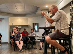 Notre chauffeur est de retour et nous continuons notre découverte des îles. Comme c’est agréable d’avoir avec nous Josée et Monique pour nous renseigner sur la vie des madelinots. Nous nous arrêtons pour le dîner au restaurant le Patio de Cap aux meules. Plusieurs font la découverte de la Calzone aux fruits de mer qui est juste succulente.