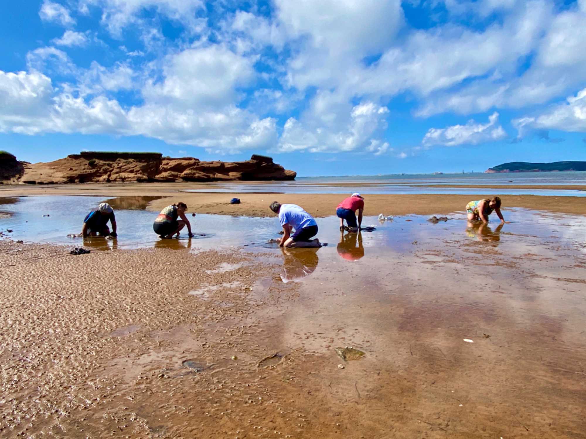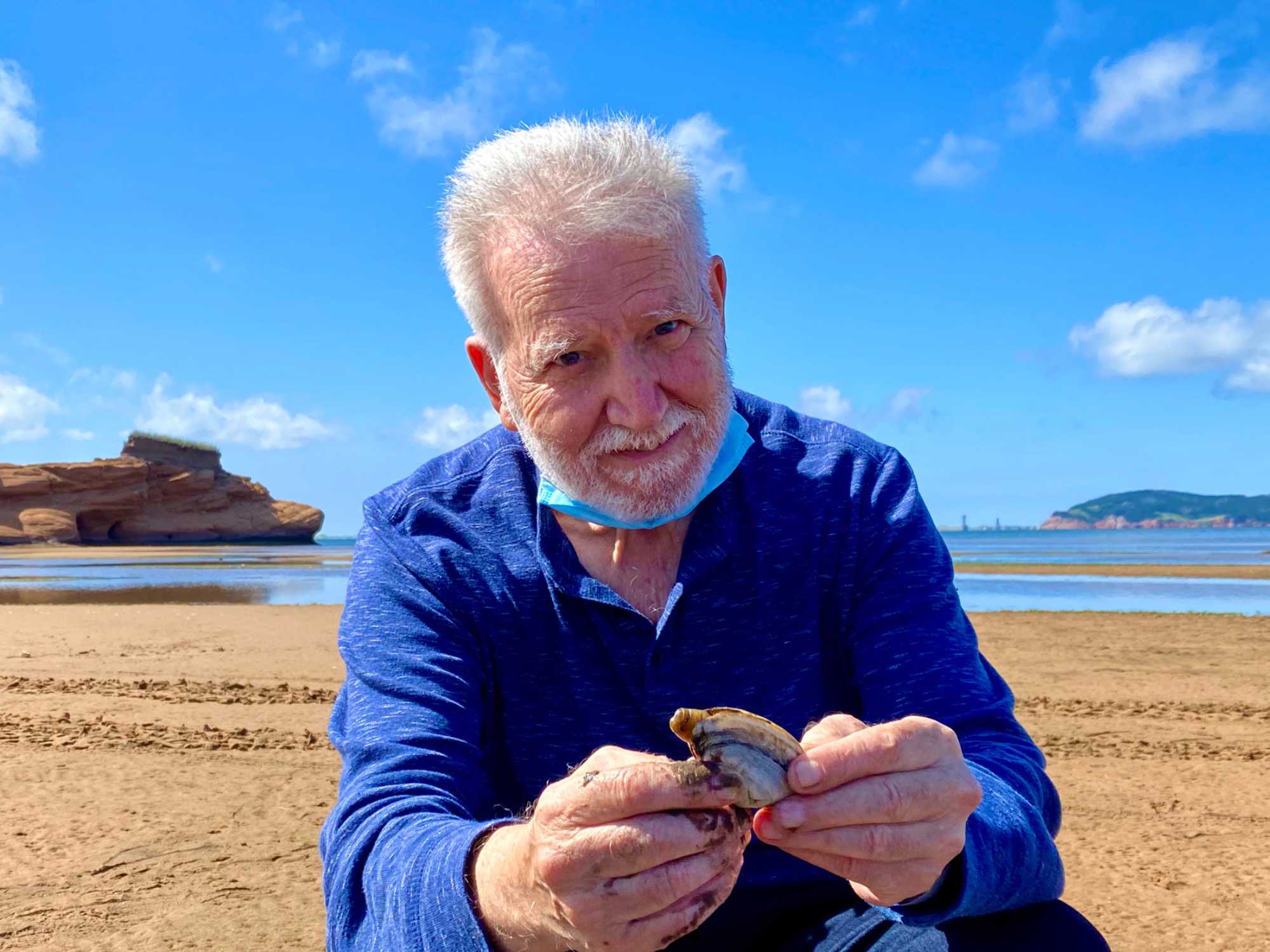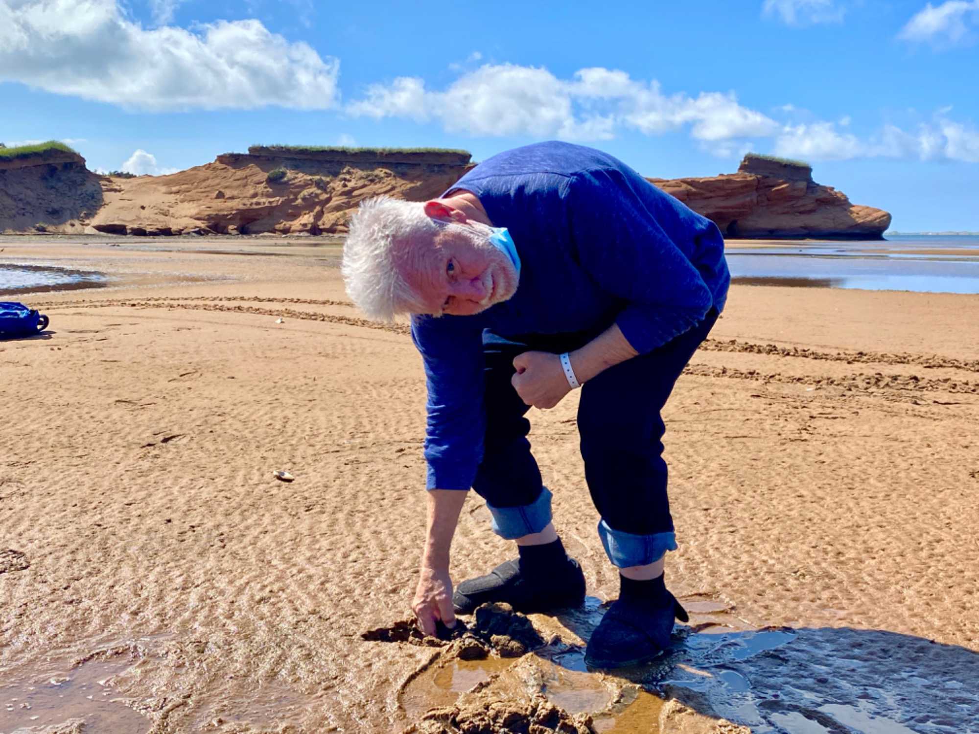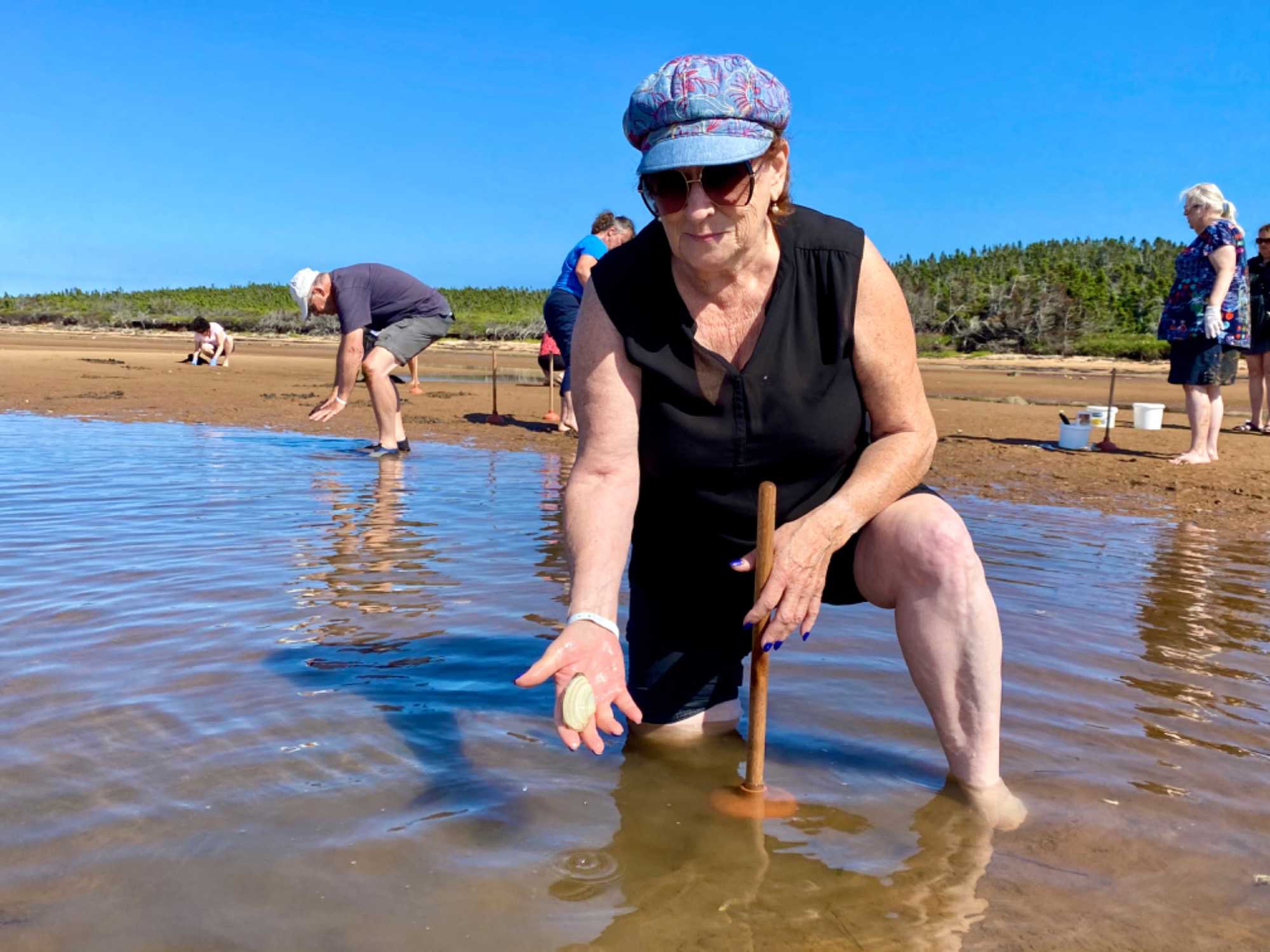 Notre deuxième arrêt fût à la plage de Grande Échouerie et dès notre arrivée, nous sommes bien impressionnés par la longueur de la plage. Si l’on désire marcher, c’est la bonne plage car on pourrait marcher 21 km en suivant la mer et espérer un transport sur roues au retour. Josée nous mentionne que plusieurs font cette marche en 8 heures environ. Nous avons eu du temps libre pour nous promener mais personne n’a osé mettre plus que les pieds à l’eau. Il faut vous dire que mes souvenirs de Old Orchard revenaient rapidement en touchant l’eau avec mes orteils. Froid ou pas mal froid, on nous a dit environ 61 degrés… c’est bien cela, comme la côte du Maine où nous y allions toutes jeunes en famille. Mais ici, ils ont le sable blanc, qui chante comme Monique nous a dit. Il suffit de marcher en glissant les pieds dans le sable pour l’entendre chanter, c’était bien amusant. Après une bonne heure nous voici de retour à notre auberge pour le dîner. Les amateurs de homards étaient servis avec la célèbre guédille aux homards de l’Auberge. En après-midi, la pêche aux coques étaient organisées pour le groupe. Il faisait un temps splendide pour ne pas dire parfait. Christian directeur de l’agence de Louise Drouin est arrivé pour passer quelques jours aux îles et était présent pour le groupe avec Louise et ses amis.