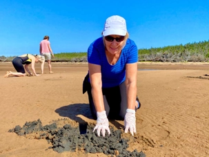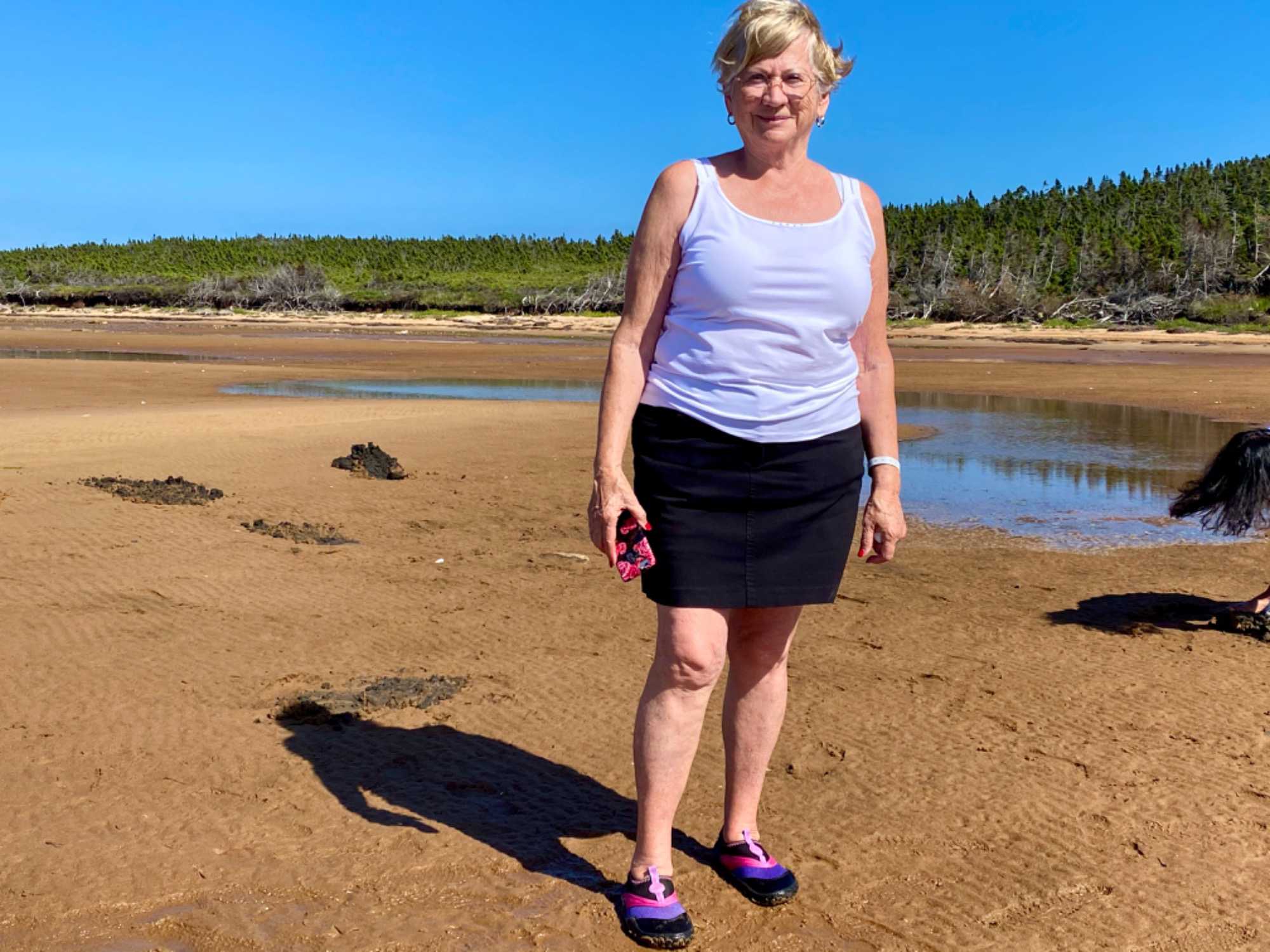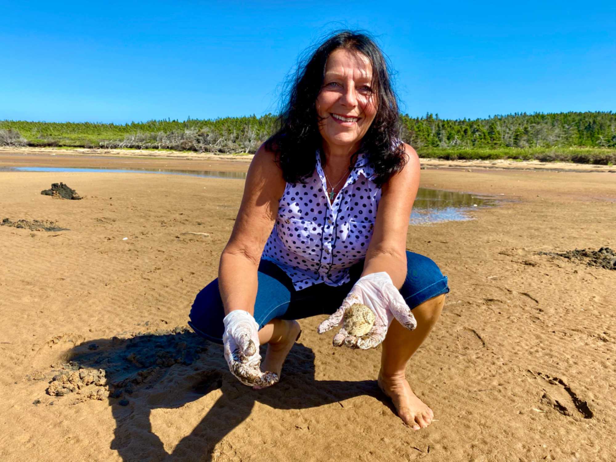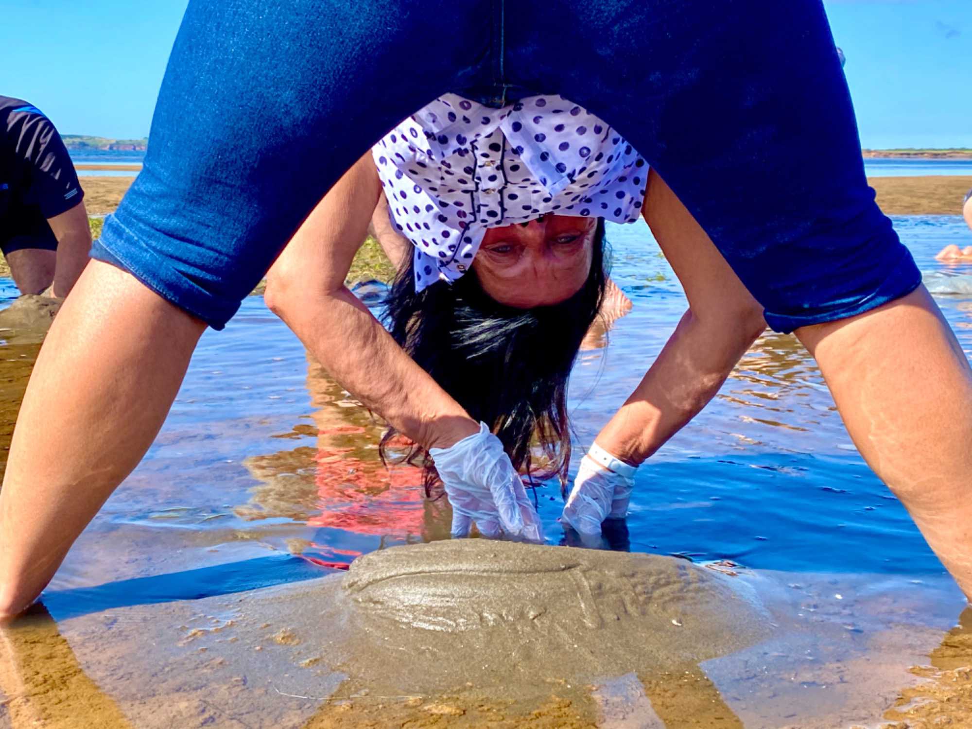 Notre deuxième arrêt fût à la plage de Grande Échouerie et dès notre arrivée, nous sommes bien impressionnés par la longueur de la plage. Si l’on désire marcher, c’est la bonne plage car on pourrait marcher 21 km en suivant la mer et espérer un transport sur roues au retour. Josée nous mentionne que plusieurs font cette marche en 8 heures environ. Nous avons eu du temps libre pour nous promener mais personne n’a osé mettre plus que les pieds à l’eau. Il faut vous dire que mes souvenirs de Old Orchard revenaient rapidement en touchant l’eau avec mes orteils. Froid ou pas mal froid, on nous a dit environ 61 degrés… c’est bien cela, comme la côte du Maine où nous y allions toutes jeunes en famille. Mais ici, ils ont le sable blanc, qui chante comme Monique nous a dit. Il suffit de marcher en glissant les pieds dans le sable pour l’entendre chanter, c’était bien amusant. Après une bonne heure nous voici de retour à notre auberge pour le dîner. Les amateurs de homards étaient servis avec la célèbre guédille aux homards de l’Auberge. En après-midi, la pêche aux coques étaient organisées pour le groupe. Il faisait un temps splendide pour ne pas dire parfait. Christian directeur de l’agence de Louise Drouin est arrivé pour passer quelques jours aux îles et était présent pour le groupe avec Louise et ses amis.