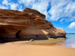 Ce matin, pour ceux qui désiraient se reposer c’était le moment car la découverte du centre d’interprétation du phoque est à l’auberge de la Salicorne. Mais je pense que tous y étaient pour entendre les explications. Par la suite, découverte, d’une des plus belles plages des îles, celle de Grande Échouerie. L'archipel des Îles comprend une douzaine d'îles, dont six sont reliées entre elles par d'étroites dunes de sable. Ce sont, du nord au sud, l'Île de la Grande Entrée où nous sommes, la Grosse Île, l'Île de la Pointe aux Loups, l'Île du Havre aux Maisons, l'Île du Cap aux Meules et l'Île du Havre Aubert.