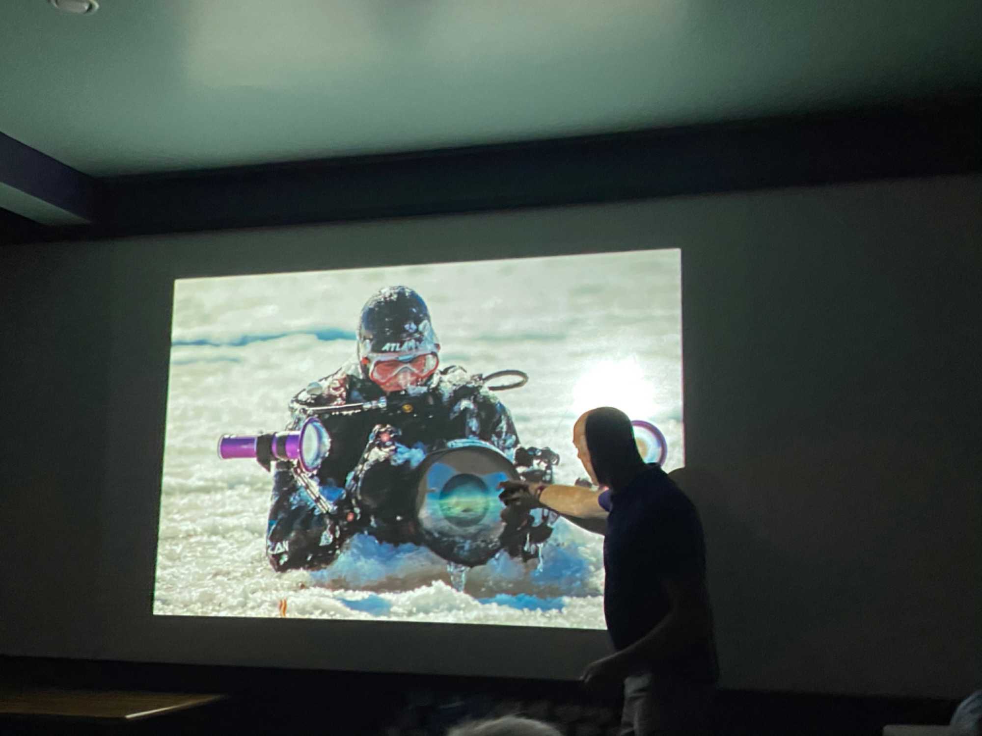 Mario Cyr est considéré comme l’un des plus grands spécialistes au monde de la prise de vue sous l’eau. Ses plongées en eaux glacées nous amènent à la rencontre exceptionnelle des ours polaires, des morses et des requins blancs, pour ne nommer que ceux-là! Ce Spielberg des profondeurs captive ses auditoires par ses récits, aventures et découvertes incroyables sur le monde animal et les beautés des milieux qu’il a explorés. Son histoire démontre aux élèves l’importance de l’effort, de la persévérance et de croire en ses rêves. Ce vulgarisateur émérite sensibilise son auditoire aux enjeux environnementaux et à l’importance de préserver ce précieux héritage. Photographe hors pair et excellent narrateur, nous avons été charmés encore une autre fois. En plus, c’était une conférence privée donc juste pour nous. Il nous a partagé sa grande passion de plongeur et photographe et nous étions tout ouïe pour l’écouter nous en témoigner.