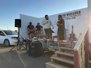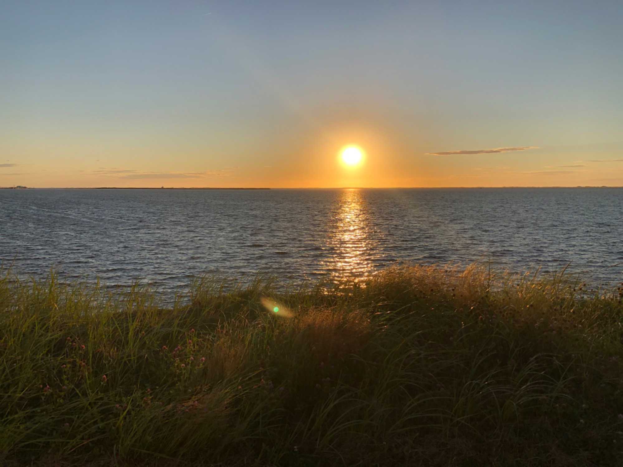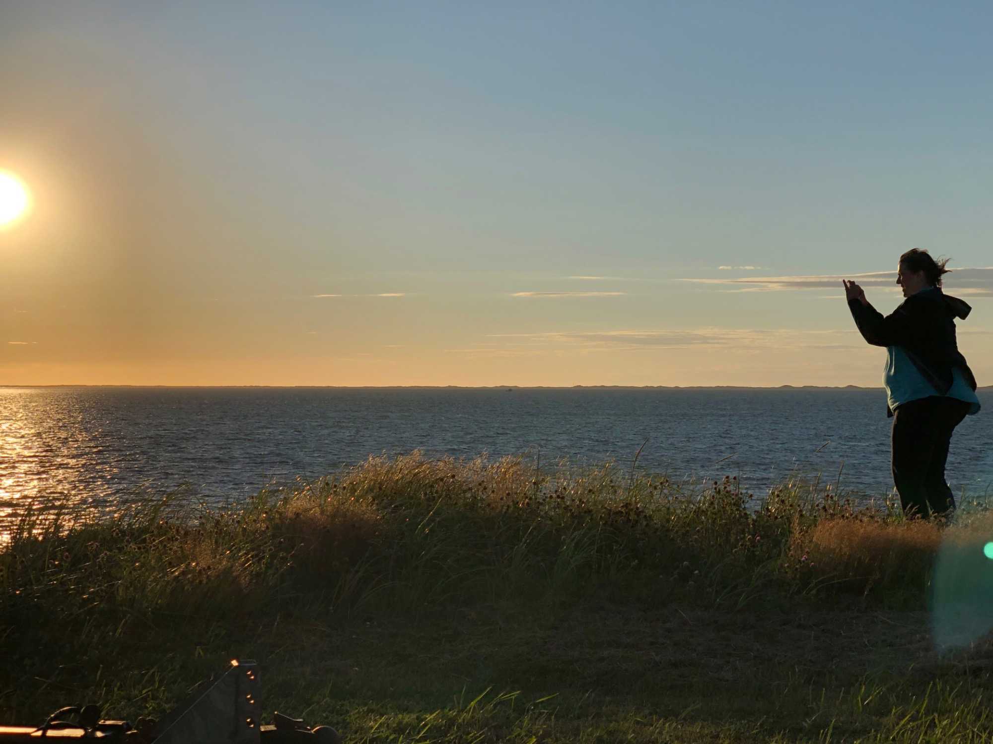 En soirée, nous avons été invités à participer à une soirée typiquement madeleinoise. Un endroit unique nous attendait sur le perron de l’église. Deux conteurs et deux musiciens nous ont fait découvrir la culture des îles en chansons et légendes. Le plus amusant étaient les madelinots de la ville venus les entendre et ce dans leur voiture. Nous nous sommes bien amusés et cela tout en admirant le superbe coucher de soleil.