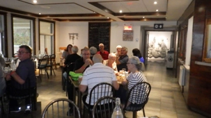 Notre arrivée à l’hôtel La Salicorne se fait facilement, un bon dîner nous attend. Les nouveaux voyageurs de l’auberge commencent à découvrir la belle salle à manger avec la vue extraordinaire ce qui ne fait qu’agrémenter le succulent repas qui les attendait. Les gens avaient le choix entre la chaudrée de palourdes ou saucisses sanglier; les avis étaient unanimes, c’était succulent. Ensuite, tous les voyageurs sont montés à bord de l’autocar pour une petite balade d’après-midi.