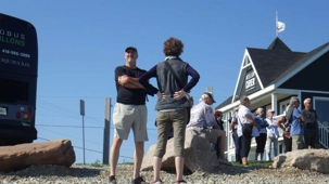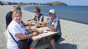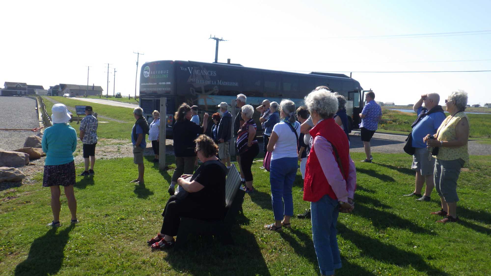 Après un bon petit déjeuner (soit le déjeuner brunch du dimanche avec les œufs, jambon, saucisses, bacon, etc. Ouf ! c’est difficile pour la ligne!), c’est le moment de partir du côté de Havre Aubert... Bernard, notre sympathique chauffeur, est de retour avec Josée qui continue de nous informer sur les Îles avec ses anecdotes sur plein de sujets et sur l’histoire des Îles. Comme c’est agréable d’avoir avec nous cette guide pour nous renseigner sur la vie des Madelinots.