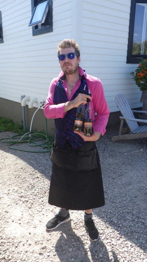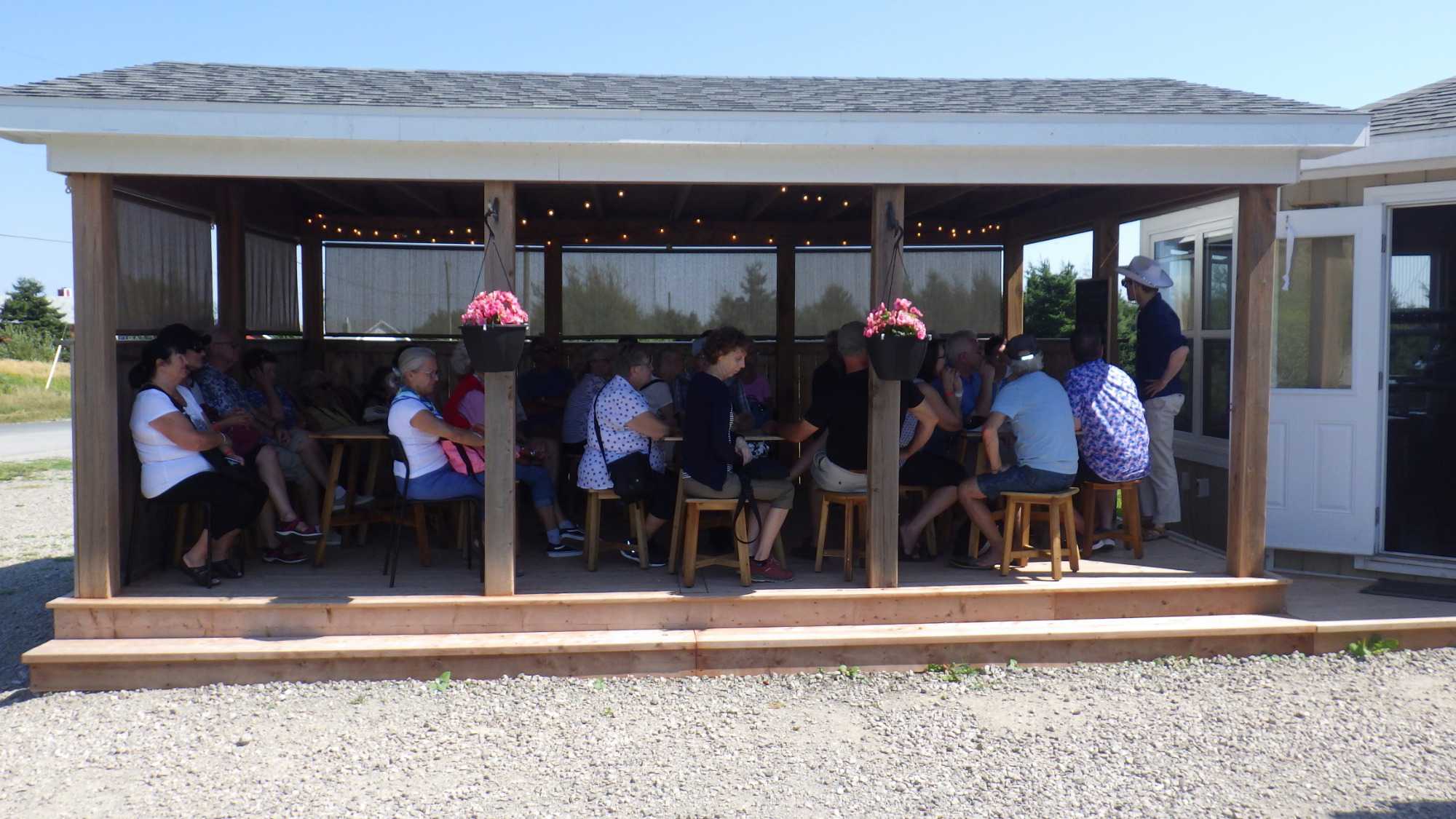 Après le repas ou notre pique-nique nous reprenons la route pour visiter le Verger Poméloi. M. Eloi et son fils Éli, de fascinants Madelinots, nous reçoivent avec une façon bien à eux de nous décrire leur passion. C’est la découverte du premier et du seul verger sur le territoire des Îles. Nous découvrons un beau site et des espèces d’arbres fruitiers ainsi que des cidres et eaux-de-vie uniques au Québec. Wow! j’ai entendu des commentaires des plus intéressants sur ces belles dégustations que tous ont pris avec un brin d’humour. Une autre découverte de gens passionnés. Vraiment un bel endroit à visiter, encore merci à Éli pour la visite et les explications.