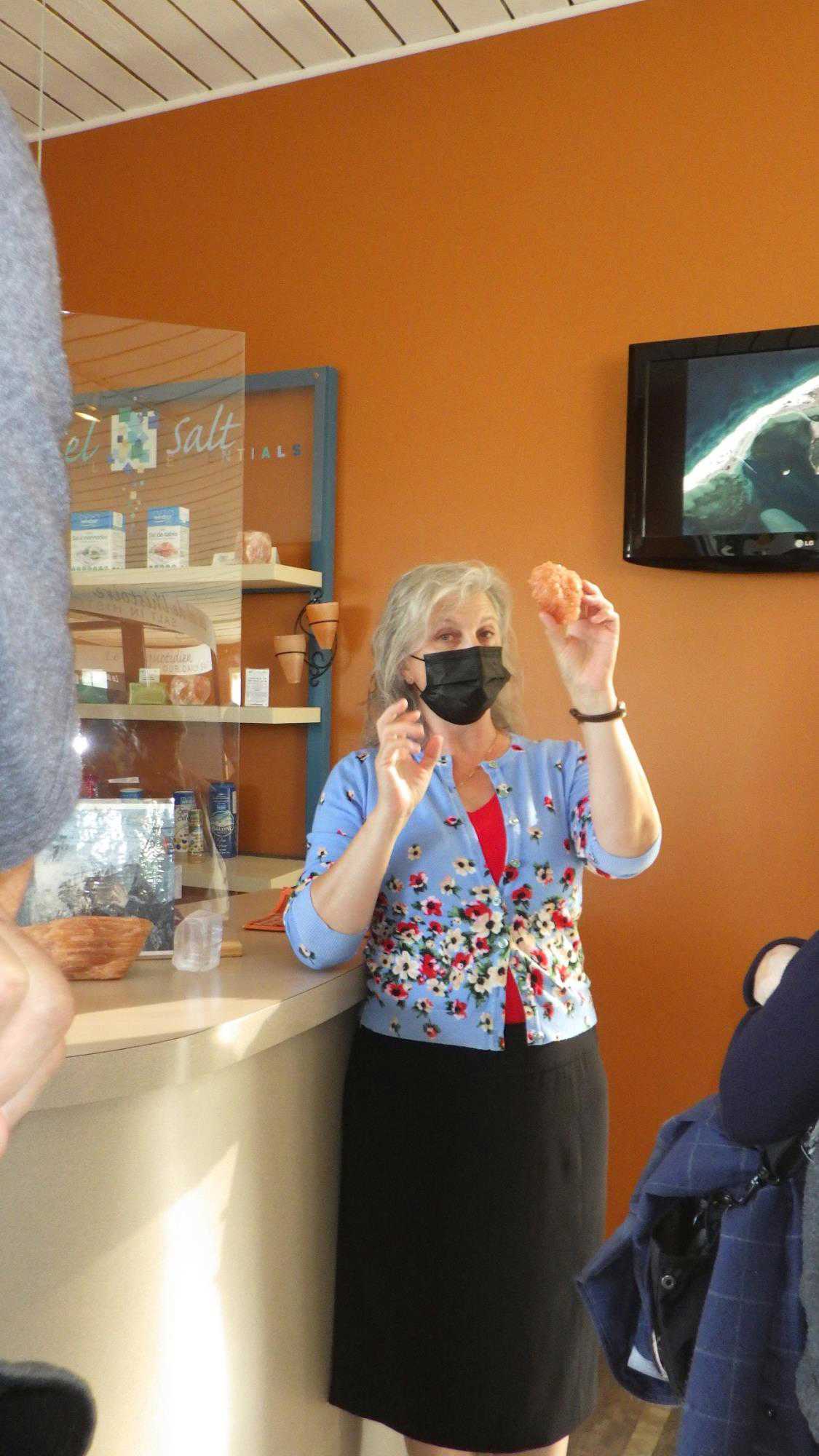 Nous quittons ce matin sous un beau soleil avec notre chauffeur; aujourd’hui, c’est Armand. Notre merveilleuse guide Josée est aussi de la partie. Nous avons une vingtaine minutes de route à faire vers la mine de sel, Seleine. Nous avons eu droit à une très intéressante visite commentée par une passionnée de son travail, Mlle Ouellette. Elle n’a pas ménagé ses informations pour nous expliquer ce que la mine est pour les Madelinots. C’était très intéressant et surtout rempli d’humour. Merci encore Mlle Ouellette!