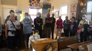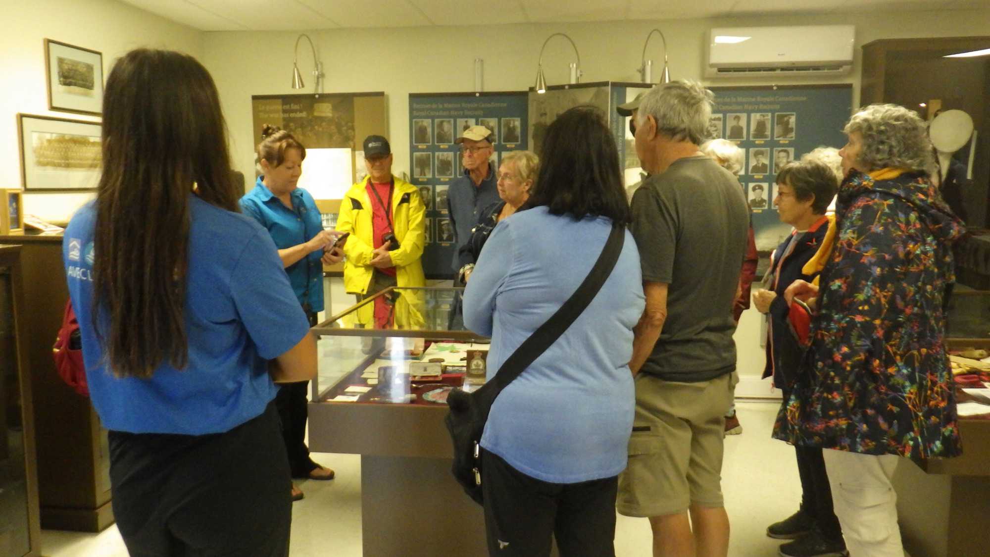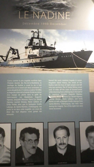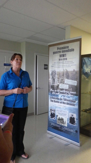 Ensuite c’était la guide Rosana du musée des vétérans et de la petite école rouge, qui nous attendait. Le complexe historique et patrimonial de CAMI (Council for Anglophone Magdalen Islanders) comprend deux petits musées, une boulangerie artisanale (Grandma’s Bakery) ainsi qu’un parc commémoratif rendant hommage aux Madelinots ayant donné leur vie pour leur pays. Le premier musée a été aménagé dans une petite école rouge (Little Red Schoolhouse) retraçant l’histoire de la communauté anglophone des Îles-de-la-Madeleine principalement concentrée à Grosse-Île, Old Harry ainsi qu’à l’Île d’Entrée, tout cela dans le décor typique des petites écoles d’autrefois où plusieurs niveaux se trouvaient dans la même classe. La boulangerie artisanale où le visiteur peut acheter différents produits frais confectionnés sur place (comme chez grand-maman), est située à l’arrière de l’école, au sous-sol. Son voisin, le musée des Anciens Combattants ainsi que le parc commémoratif situé juste en face, rend hommage aux Madelinots ayant donné leur vie pour leur pays lors de la Première Guerre mondiale, la Seconde Guerre mondiale et la guerre de Corée.