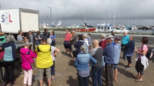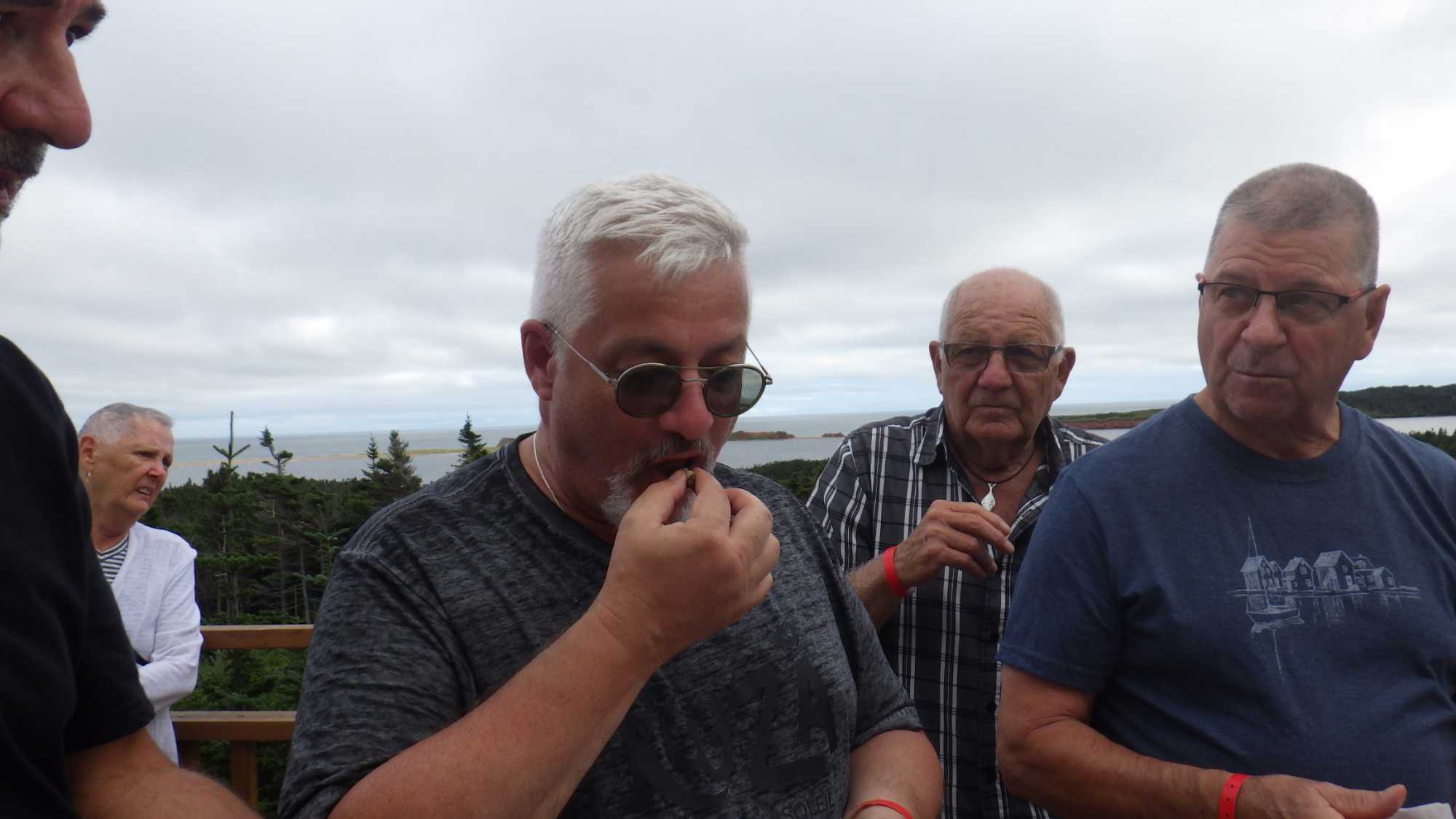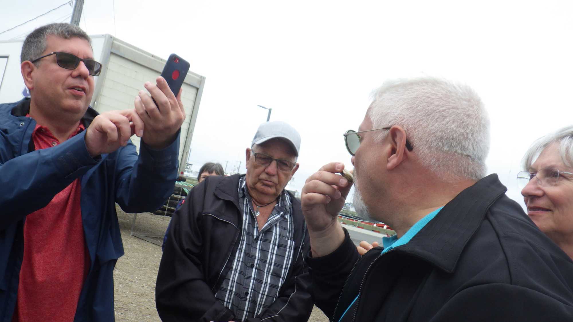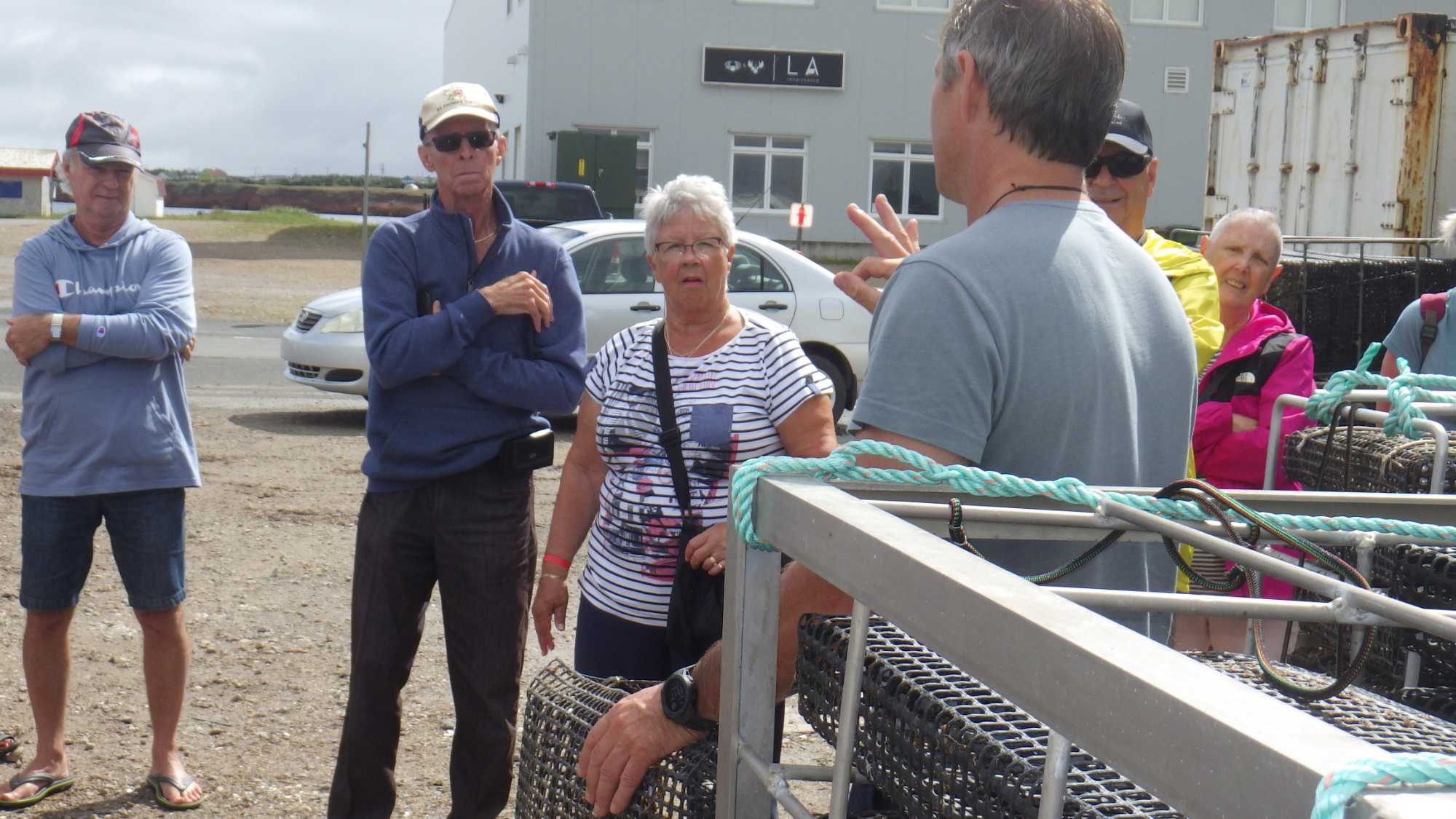Nous remontons à bord du bus afin de prendre la direction du port pour rencontrer Carlos qui nous fait un bel exposé sur la culture des moules. Des mariculteurs des Îles-de-la-Madeleine deviennent les premiers à commercialiser une huître du Québec. Comme ils travaillent dur pour arriver à produire ces délicieuses huîtres localement! Les jeunes huîtres mises en élevage mesurent 35 millimètres. Elles sont placées dans des cages immergées en mer. Les mariculteurs les visitent régulièrement pour les reclasser par taille. Les mollusques prennent trois à quatre ans pour atteindre la taille commerciale de 75 millimètres, soit le format dit « choice ». Nous avons pu déguster les délicieuses huîtres de Grande Entrée, plusieurs en ont mangé une, deux ou peut-être trois huitres. Nous les retrouvons au Québec et c’est un excellent produit à découvrir; retenez le nom, Les huîtres de Grande Entrée. Merci Carlos pour votre générosité et votre enthousiasme.