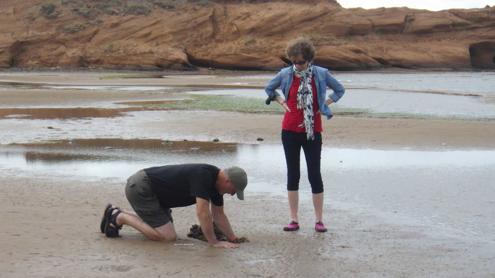 On ne vous mentait pas lorsqu’on vous a dit qu’aller creuser pour trouver des coques, c'est une activité estivale très attendue à l’Île, est c’est vraiment amusant. La saison de la pêche aux coques commence en mai et se termine en octobre. Le meilleur temps pour la pêche est pendant la marée basse lorsque la mer recouvre une moins grande partie de la plage. Sachez qu'une réglementation en vigueur depuis 2004 permet la cueillette récréative de 300 coques d'une taille minimale de 2 pouces par jour et par individu. Nous avions une mesure car on doit respecter la dimension et retourner celles qui étaient trop petites. Notre champion ramasseur fut notre ami Michel Bordeleau. À propos de Michel, c’est aussi notre champion mangeur de coques, d’huîtres, de homard et tout autre sorte de crustacé. Bravo à toi Michel!