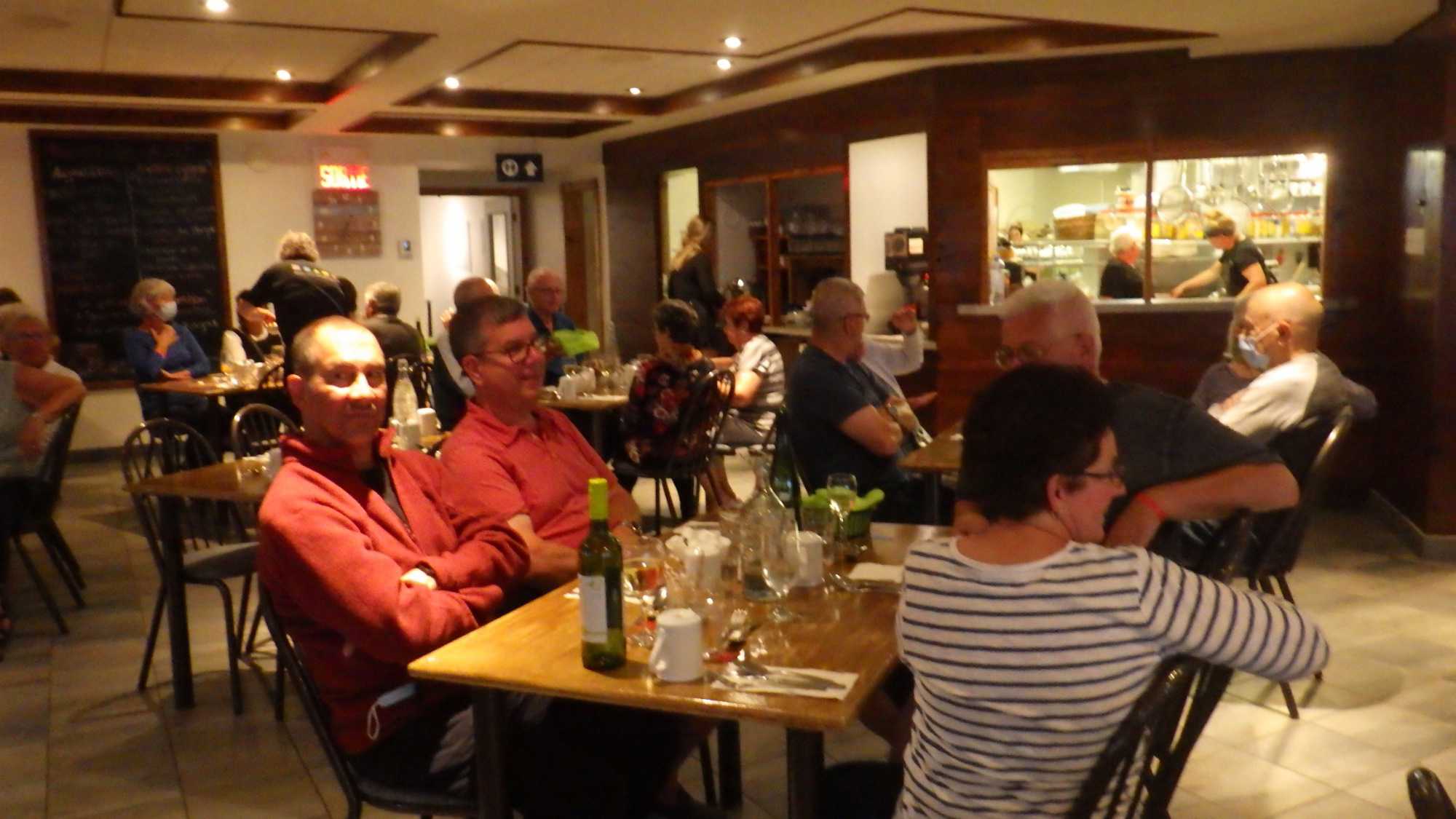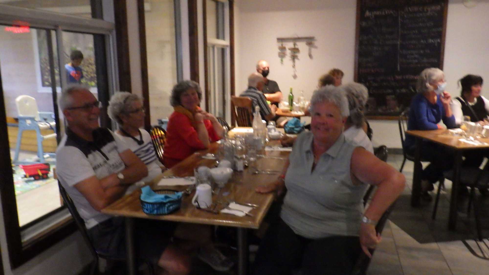 Pour terminer la soirée, les gens du groupe continuent de fraterniser et danser... autour d’un bon souper: soit, le choix entre les pennes aux crevettes ou l’assiette de longe de porc.