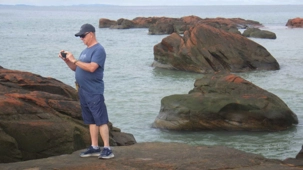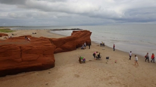 Nous commençons notre dernière journée par une randonnée sur l’Île Boudreau. Située à l'est de l'Île de la Grande-Entrée, cette île offre un sentier de 3,2 kilomètres sur le bord de la mer. Le dénivelé du sentier est léger, ce qui en fait une randonnée plus facile et appréciable en groupe. La vue, sur la mer d'un côté et sur le bassin aux huîtres de l'autre, vaut le détour. Nous y avons aussi observé quelques oiseaux marins qui nichent le long des falaises. Aujourd’hui, il fait beau, chaud et humide, ce qui rend notre randonnée un peu plus difficile mais tout de même enrichissante de paysages différents.