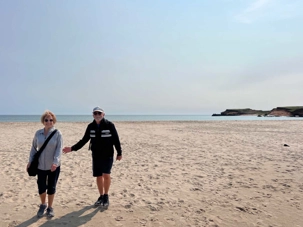 Certains auront décidés de marcher, y mettre les pieds ou tout simplement la contempler assis sur une chaise. On a même deux courageux qui s'y baignerons. Une fois dedans on est bien vous savez! On est seuls sur la plage aujourd'hui, l'air est bon et on profite du moment présent.
