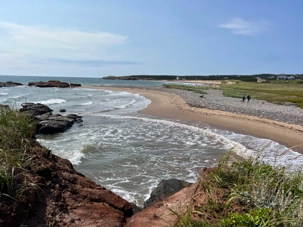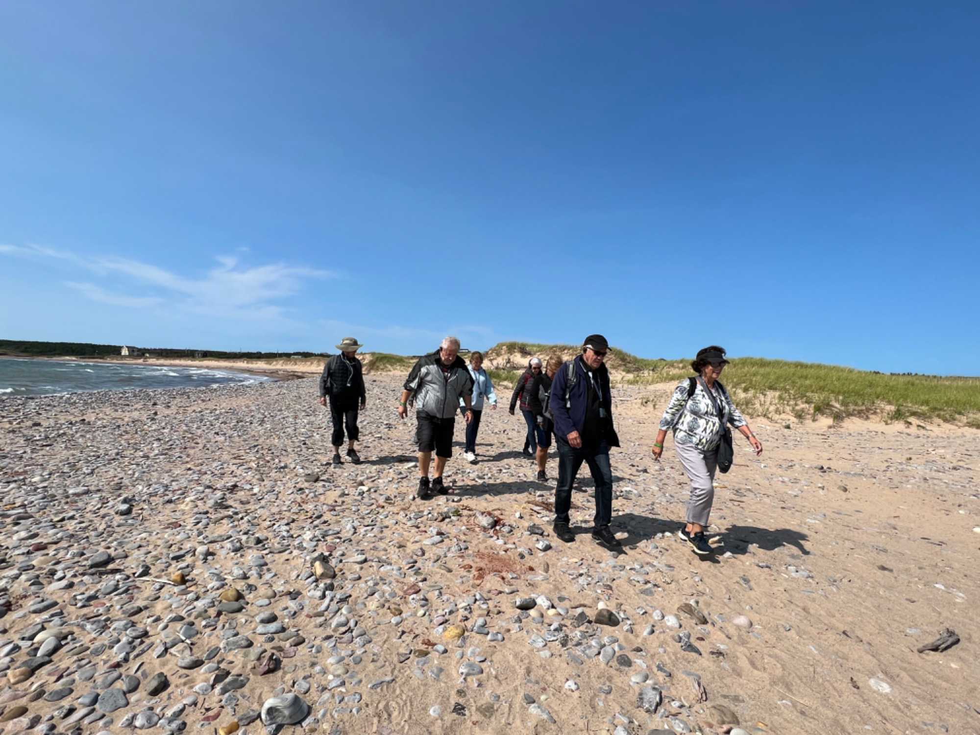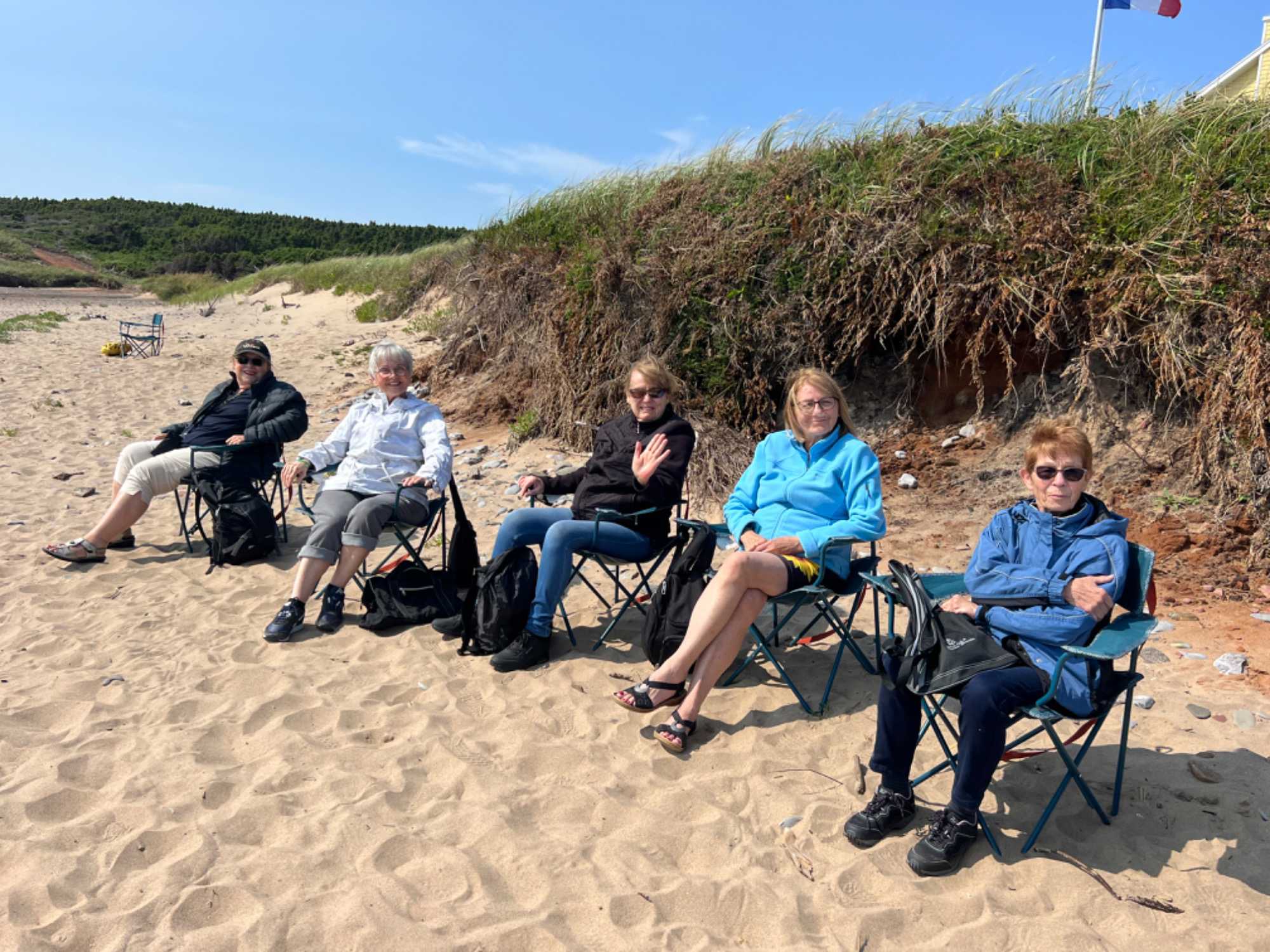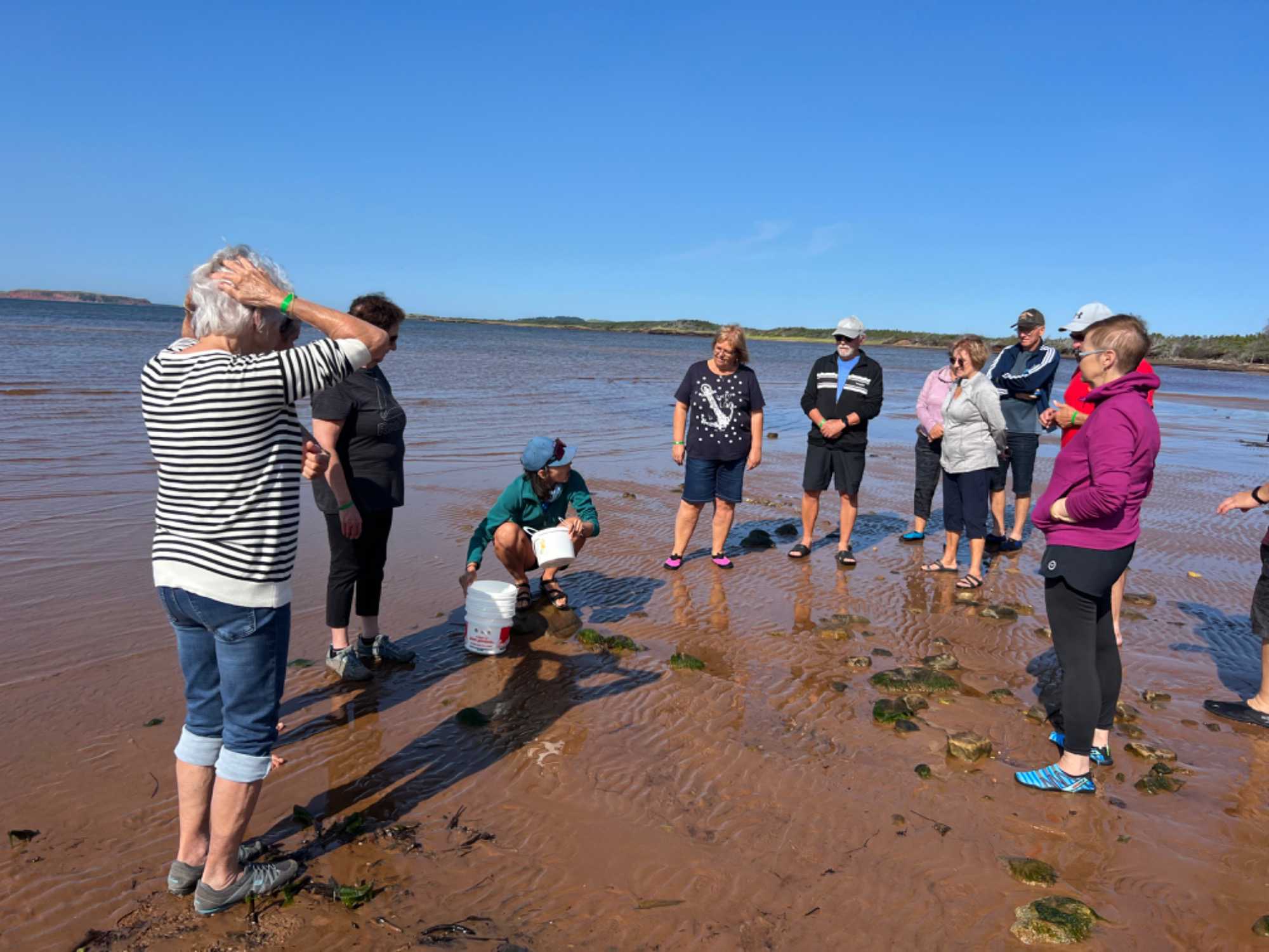De retour à l'auberge pour y déposer nos choses et nous repartirons en bus, pas très loin, pour aller vivre la fameuse pêche aux coques des îles de la Madeleine. Pêche pratiquée ici régulièrement par ses habitants. What an experience! Cette pêche doit être faite à marée basse. Quel plaisir nous avons de la découvrir! Pêche qui ne se fait pas avec une canne et une ligne à pêche! Et non, il faut creuser dans le fond de la mer pour trouver des coques, ce que Victoria nous montrera. Une activité estivale très attendue à l’Île, et c’est vraiment amusant. La saison de la pêche aux coques commence en mai et se termine en octobre. Le meilleur temps pour la pêche est pendant la marée basse lorsque la mer recouvre une moins grande partie de la plage. Sachez qu'une règlementation en vigueur depuis 2004 permet la cueillette récréative de 300 coques d'une taille minimale de 51 mm (2 pouces) par jour et par individu. Certains de nos amis auront plutôt opté pour nous regarder, encourager ou nous prendre en photos. Un bel après-midi. Je vous le dis, la température depuis leur arrivée ne pouvait pas être plus belle. Merci la vie!