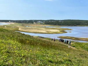 Le soleil est plus que magnifique, cette randonnée est vraiment plaisante à faire et vpus pourrez le constater par les photos. Julie, notre guide de l'auberge, passera du temps avec nous et tout au long de notre marche, elle nous montrera plusieurs plantes vivants sur ce sol un peu hostile. La randonnée d'après peu près 2.5 km, nous conduira tout au bout de l'île où l'on pourra avoir un point de vue à couper le souffle. Cette marche en valait vraiment la peine. Bravo à ceux qui ont réussi malgré le sentier parfois boueux. La vue d'en haut était époustouflante.