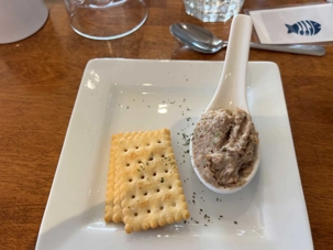Ce soir, comme menu, l'agneau des îles et la marmite de fruits de mer. C'est encore à couper le souffle toute cette variété de produits locaux. Une chance unique de goûter à plein de choses. Le maquereau fumé du fumoir d'Antan sur petits craquelins était délicieux.