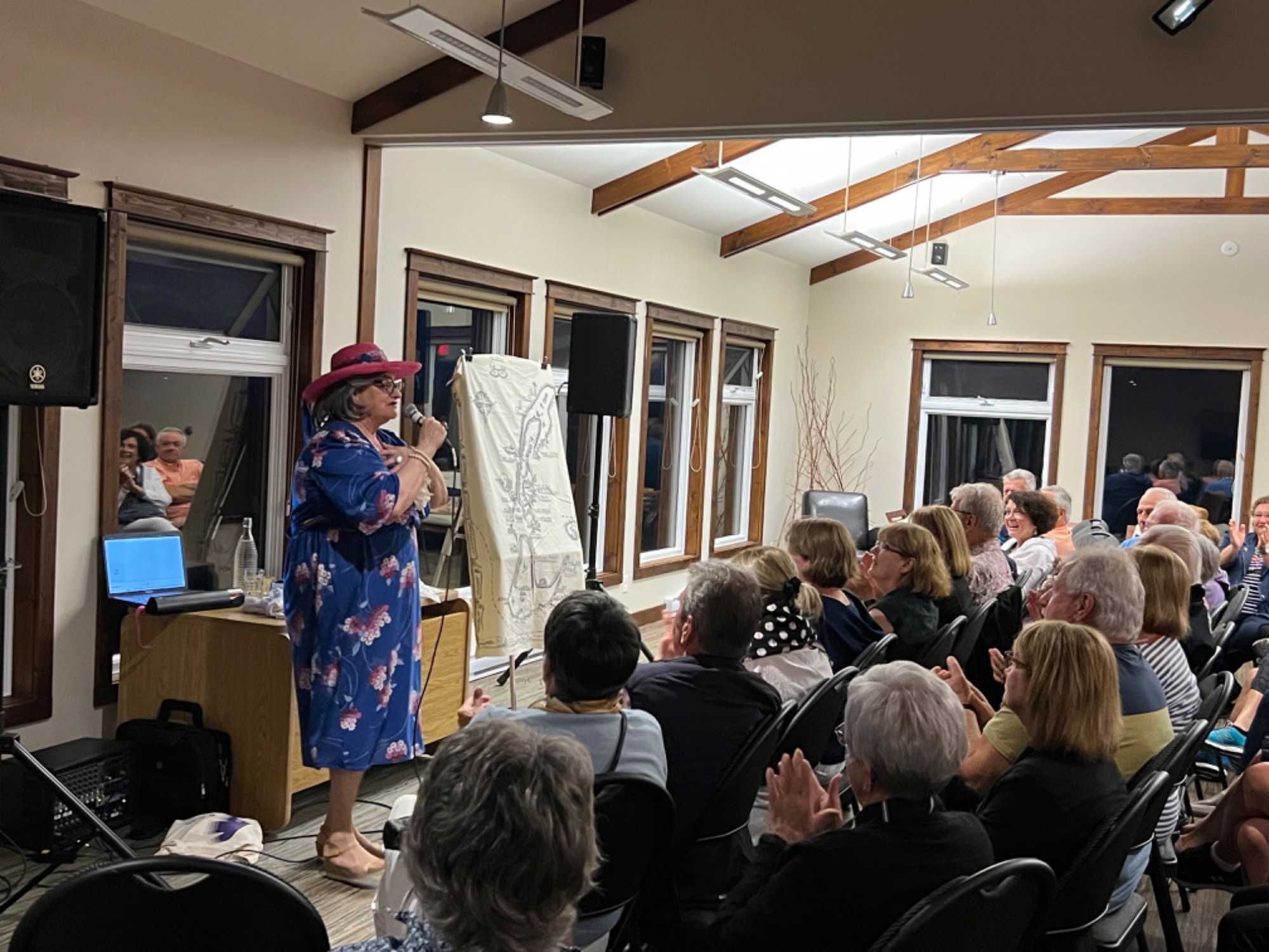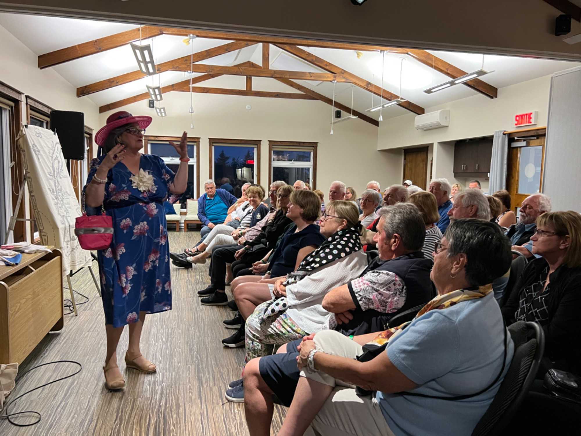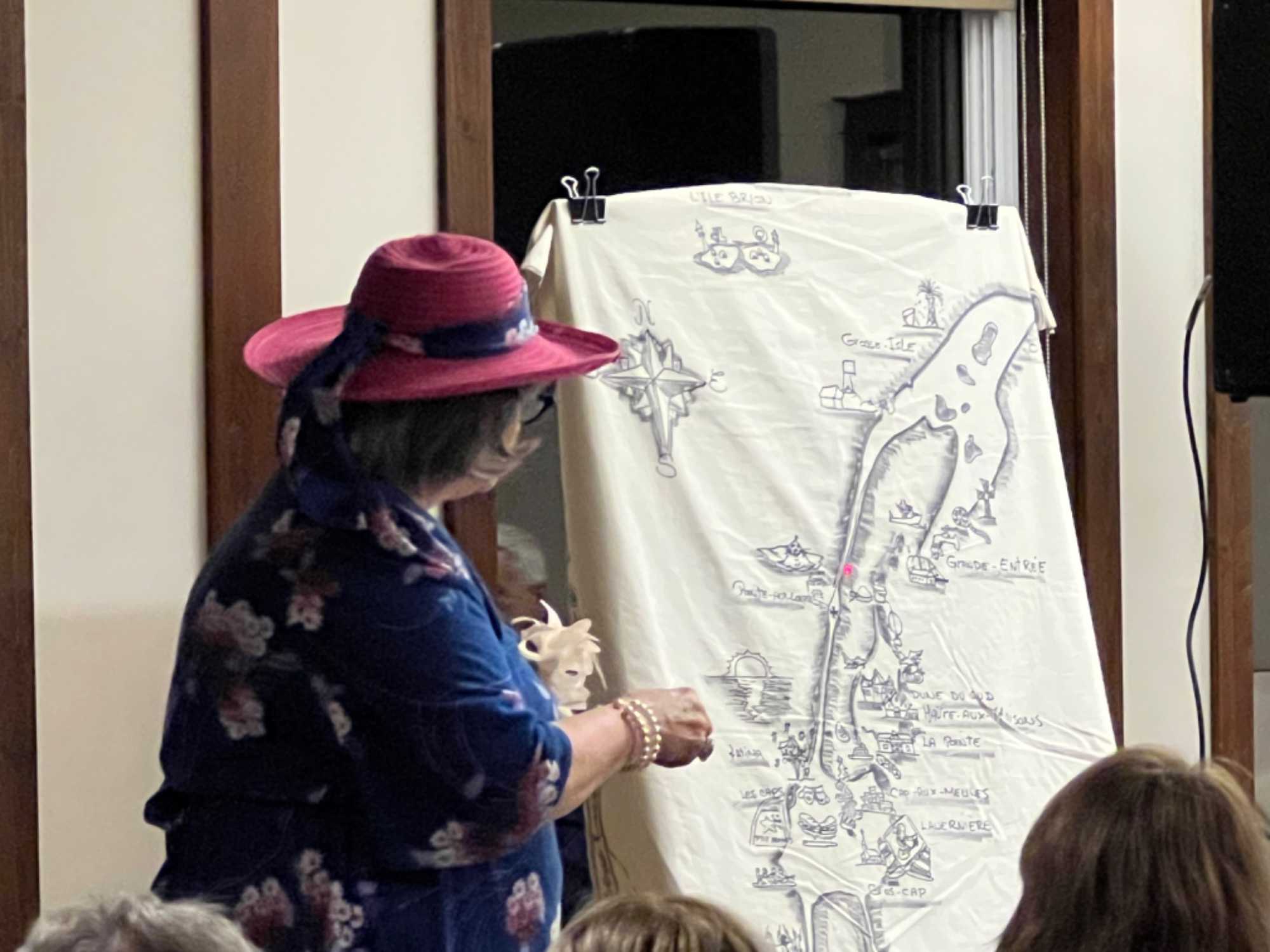 Sa personnification sur scène de Tante Emma, personnage typiquement madelinien dont la renommée ne cesse de s’étendre à travers la francophonie. C’est en empruntant le rôle de guide touristique que cette ambassadrice convie le public à parcourir avec elle l’ensemble de sa région. Cette traversée, pimentée de suggestions pertinentes et d’anecdotes hilarantes, met en relief les originalités culturelles et touristiques de son coin de pays.