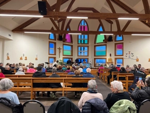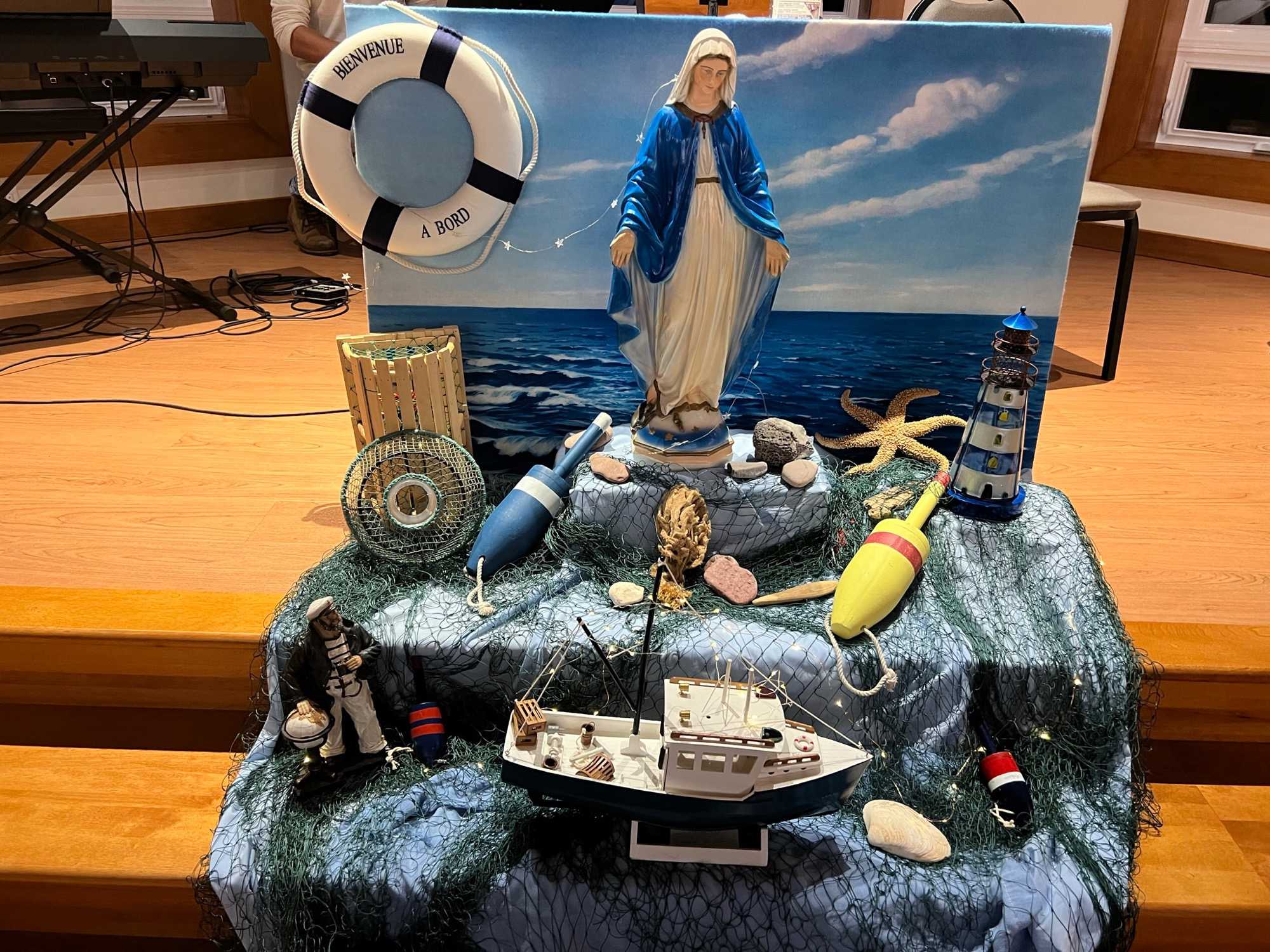 Notre souper arrive plus tôt ce soir car on a ajouté une belle activité à mes voyageurs. Ceux qui en ont envi sont invités à se joindre à la belle communauté de Grande-Entrée pour assister à la dernière Veillée sur le perron dans l'église juste en face de La Salicorne. On est accueillis avec des sourires et c'est en chansons, histoires de toutes sortes et animé par Elaine Richard, conteuse aux îles, la mise à l'eau des bateaux de pêcheurs lors de la pêche au homards à chaque printemps. Ce fut émouvant de voir cette communauté tissée serrée et combien cette industrie de la mer leur est chère et essentiel.