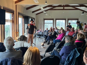 L'après-midi sera plus relaxe car vers 13h30, nous aurons la projection du film Le dernier continent avec Jean Lemire. Tous ont trouvé intéressant à regarder( fonte des glaces, l'environnement,...). Tandis que de mon côté je partirai avec Laurent, Yves et Josée à la chasse aux vagues. C'est quoi ça la chasse aux vagues et bien c'est ni plus ni moins aller d'un endroit à l'autre pour y voir les gigantesques vagues déferlées sur la plage? C'est tellement venteux aujourd'hui que ce phénomène naturel nous enivre tous les 4. Lauréat, notre pêcheur de homards, est même venu nous rejoindre. La nature à son plus beau. On est tous redevenus enfants tellement c'est beau.