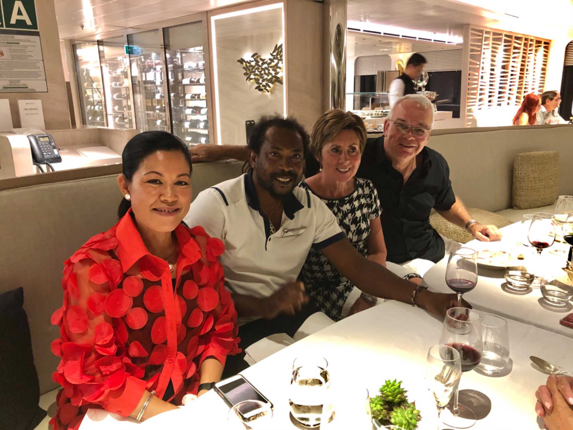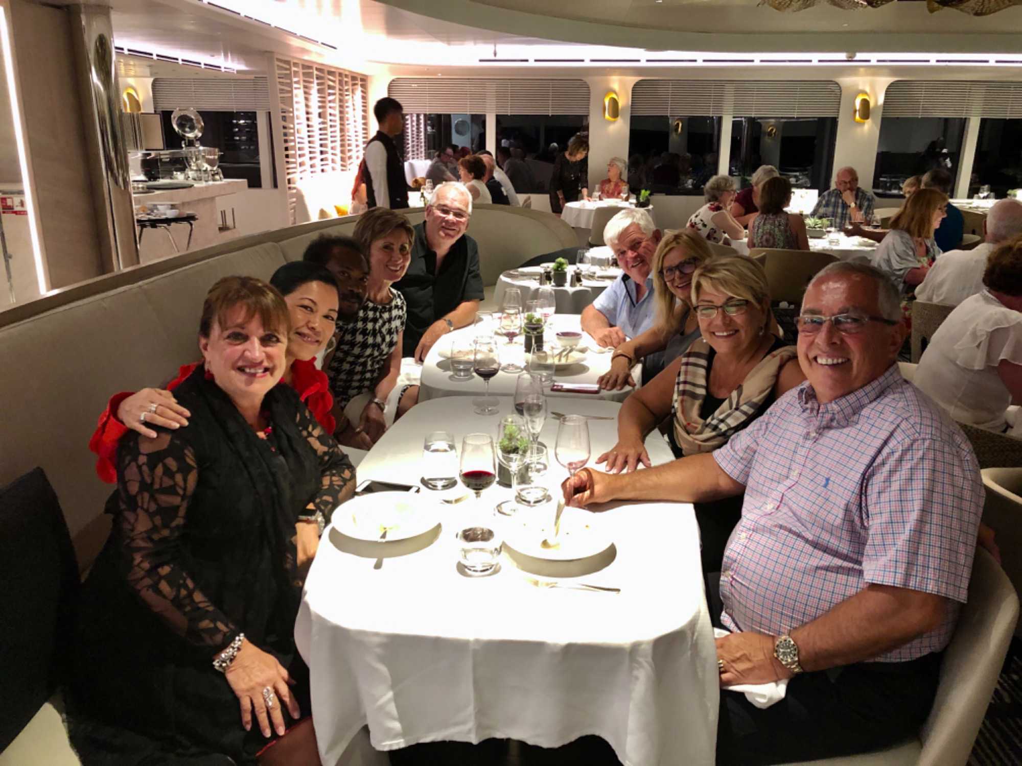 Un joli endroit pour se retrouver et échanger sur notre beau voyage. Ensuite, bien oui, encore un souper en belle compagnie. Oui je me répète, la vie est bien belle à bord d’un navire de Ponant et nous en profitons tous. J’ai ce soir deux tables de voyageurs qui ont accepté l’invitation de manger à la table de naturalistes pour une expérience agréable remplie d’échange entre ceux qui vivent sur le navire et nous voyageurs. Merci à Christophe et Albert d’avoir partagé ces beaux moments avec mon groupe.