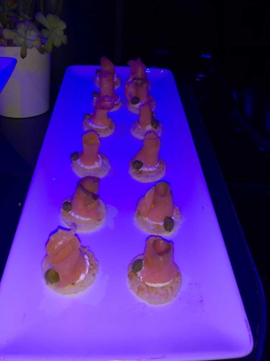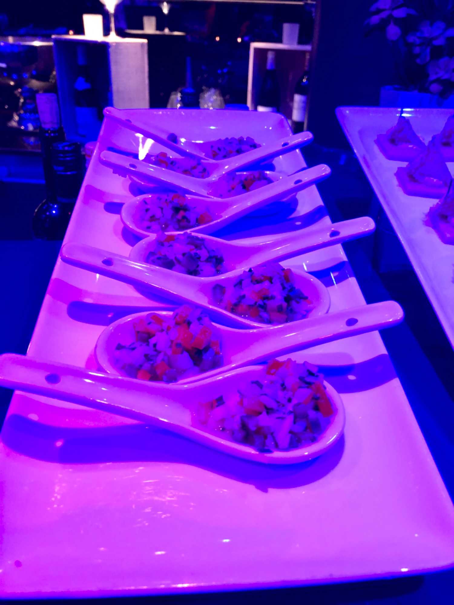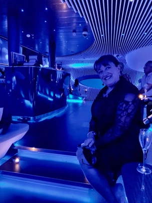 Lunch autour de la piscine et ce soir nous nous retrouvons pour une dégustation de caviar. On aime ou l’on n’aime pas mais c’est un plaisir pour ceux qui apprécient ces caviars accompagnés de champagne c’est pas mal bon. Nous nous dirigeons vers le Blue Eyes car j’ai privatisé ce salon pour un cocktail. Le Blue Eyes permet d’offrir une expérience sous-marine multisensorielle à ses passagers. La compagnie a imaginé un salon tout confort permettant d’observer la vie sous-marine de façon innovante. Des projecteurs sous-marins, non intrusifs, ont été spécialement développés pour observer la biosphère marine, les fonds marins et les organismes photoluminescents depuis le salon.