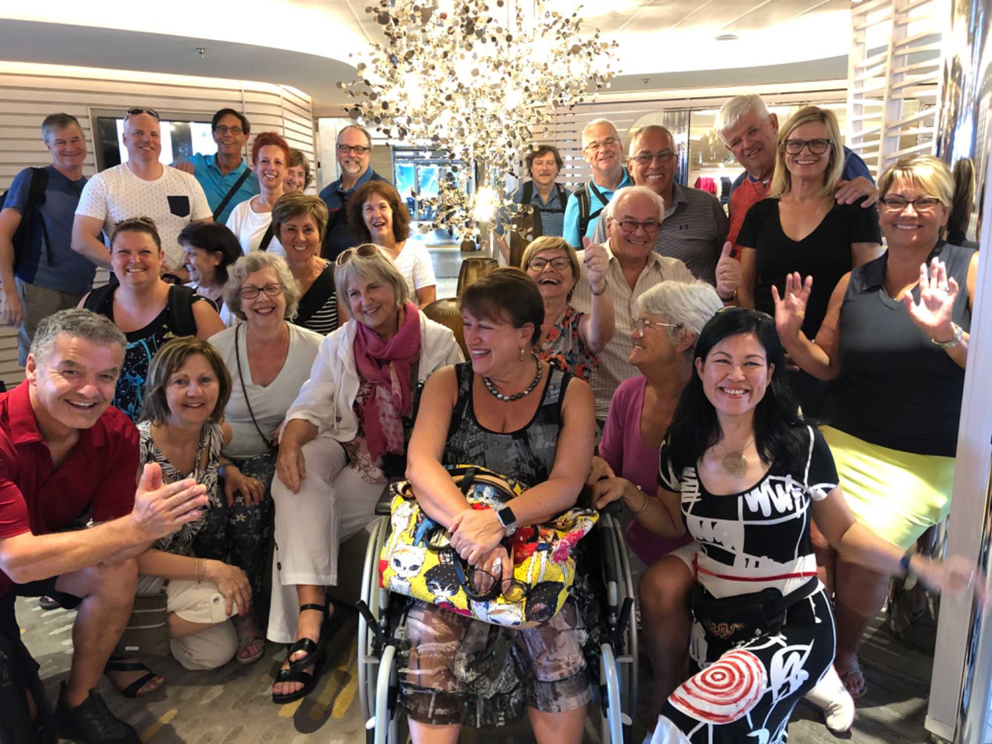 Tout va très bien et ne vous inquiétez pas pour nous car tout se déroule comme prévu. Il nous faut juste un peu plus de patience. Pour les observateurs et surtout ceux qui me connaissent, vous devez avoir remarqué que je ne portais plus de chaussures… Cela ne m’était jamais arrivé mais j’ai fait une mauvaise chute en glissant sur une surface mouillée à bord du navire et je me suis fracturé un pied. OUFFFFF!!!! Ce n’est pas des plus agréables mais un accident c’est imprévisible. Heureusement que j’ai ma belle amie et accompagnatrice Lek avec moi qui prend bien soin de moi. C’est difficile de m’arrêter, mais là je dois m’y faire et mon groupe est super gentil avec moi. Je remercie tous mes charmants amis voyageurs qui m’aident et portent mes valises et poussent ma chaise. Oui, Louise en chaise roulante...faut le voir! Je ne peux me porter sur mon pied droit cassé car je n’ai pas eu de plâtre à cause des vols donc le plâtre suivra au Québec. Entre temps, je dois faire attention et écouter les conseils de mon radiologiste voyageur François, qui est venu à bord du Ponant vérifier les radiographies. Ils sont bien équipés à bord et moi je suis bien entourée. La vie est tout de même bien belle et je profite des derniers jours ensoleillés et chauds avant de me retrouver au Québec.